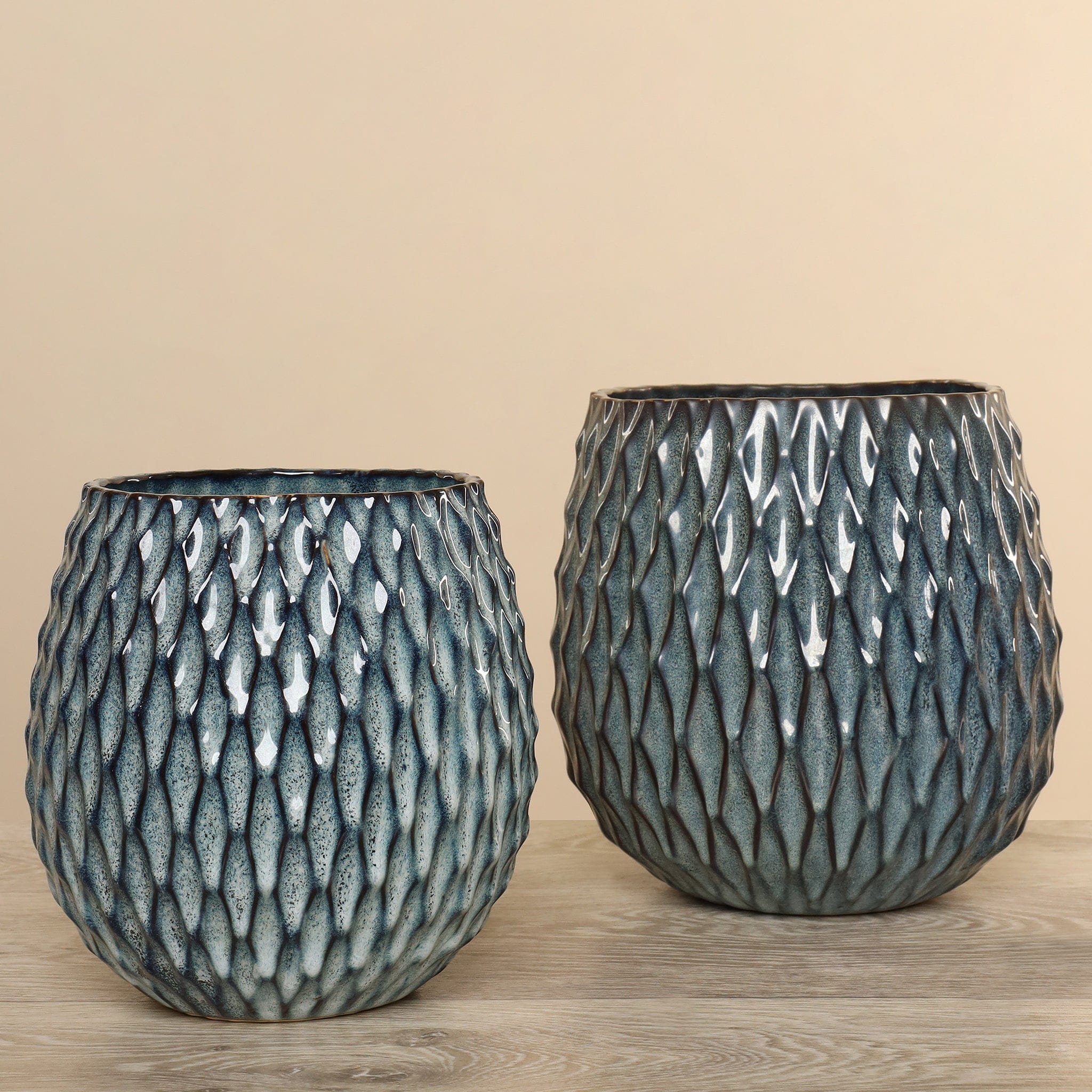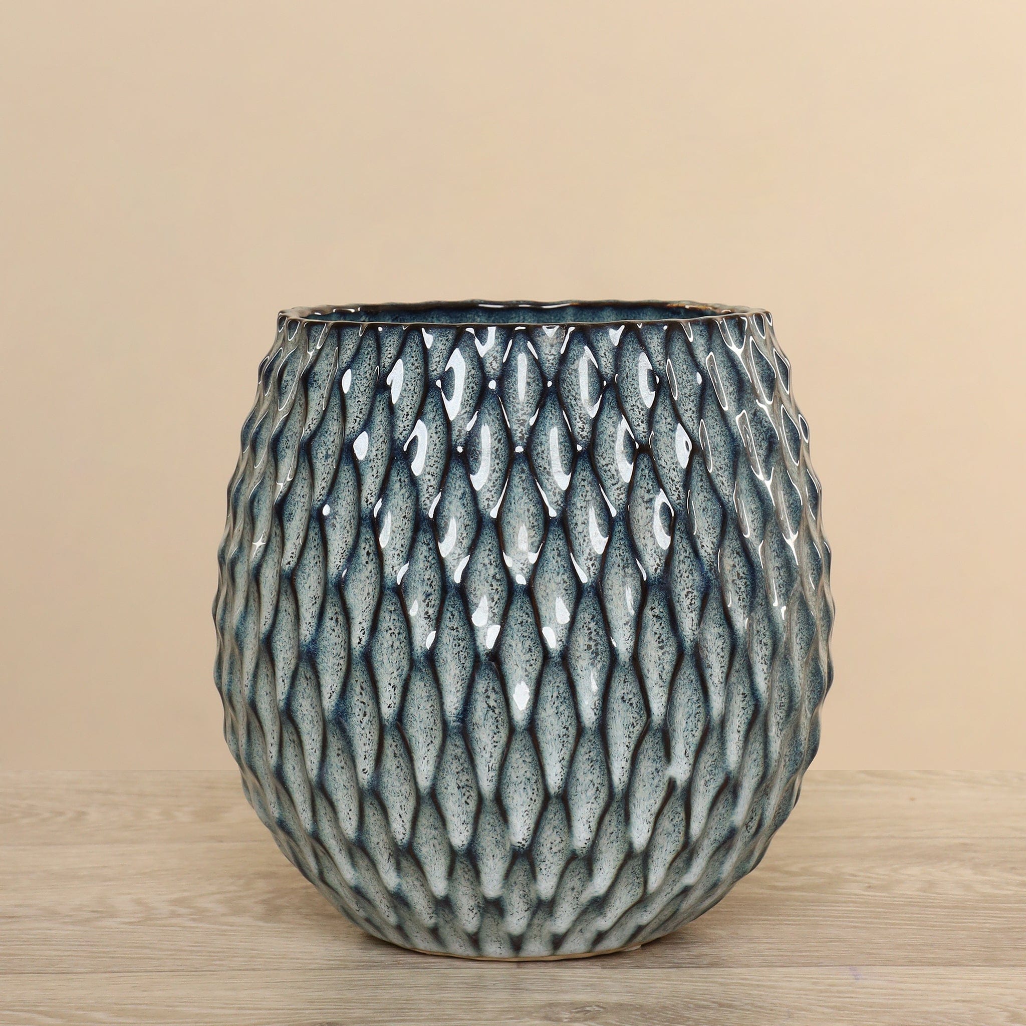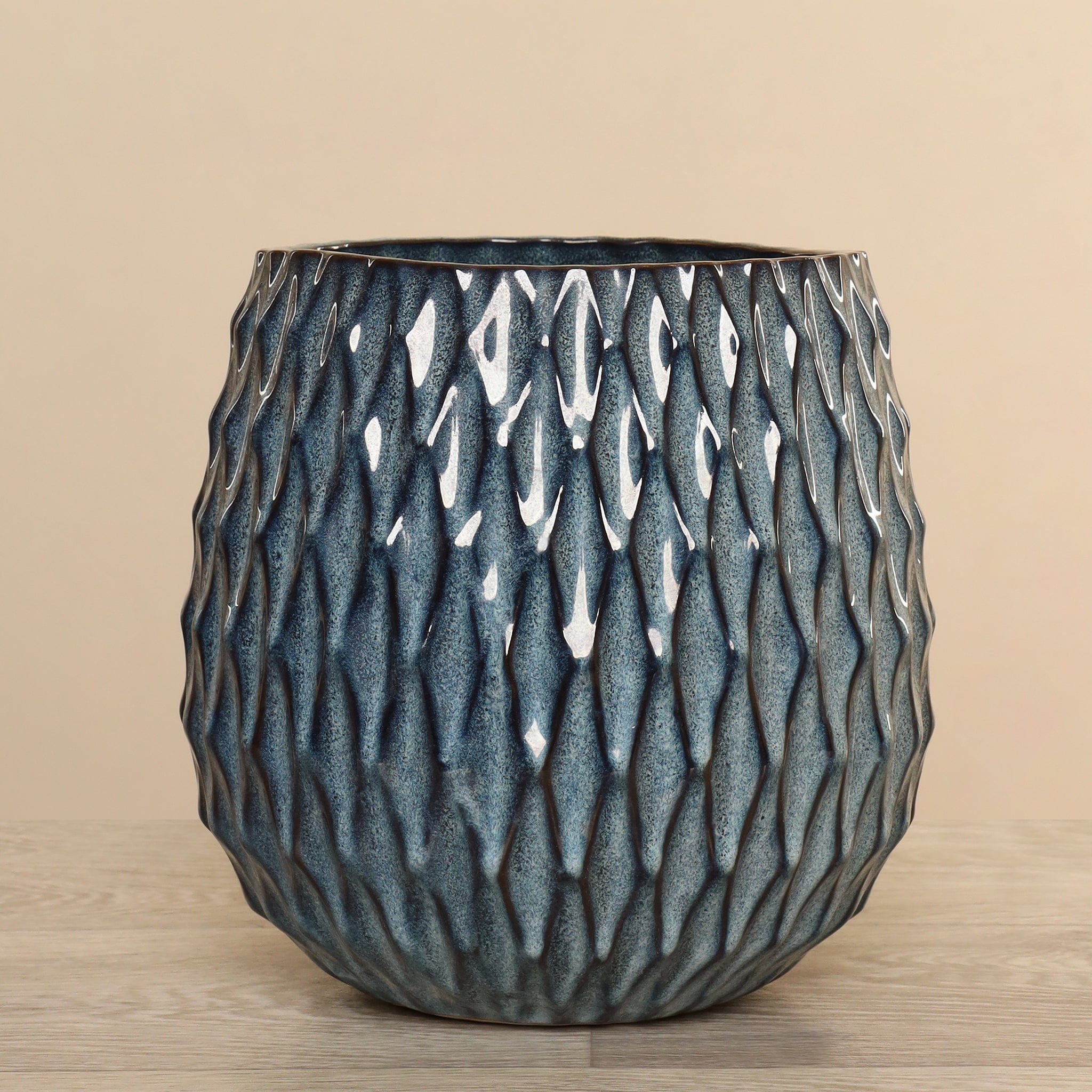 طلاء أزرق لامع بلمسة نهائية مصقولة، يمنح المزهرية مظهراً أنيقاً وعصرياً يناسب مختلف أنماط الديكور.