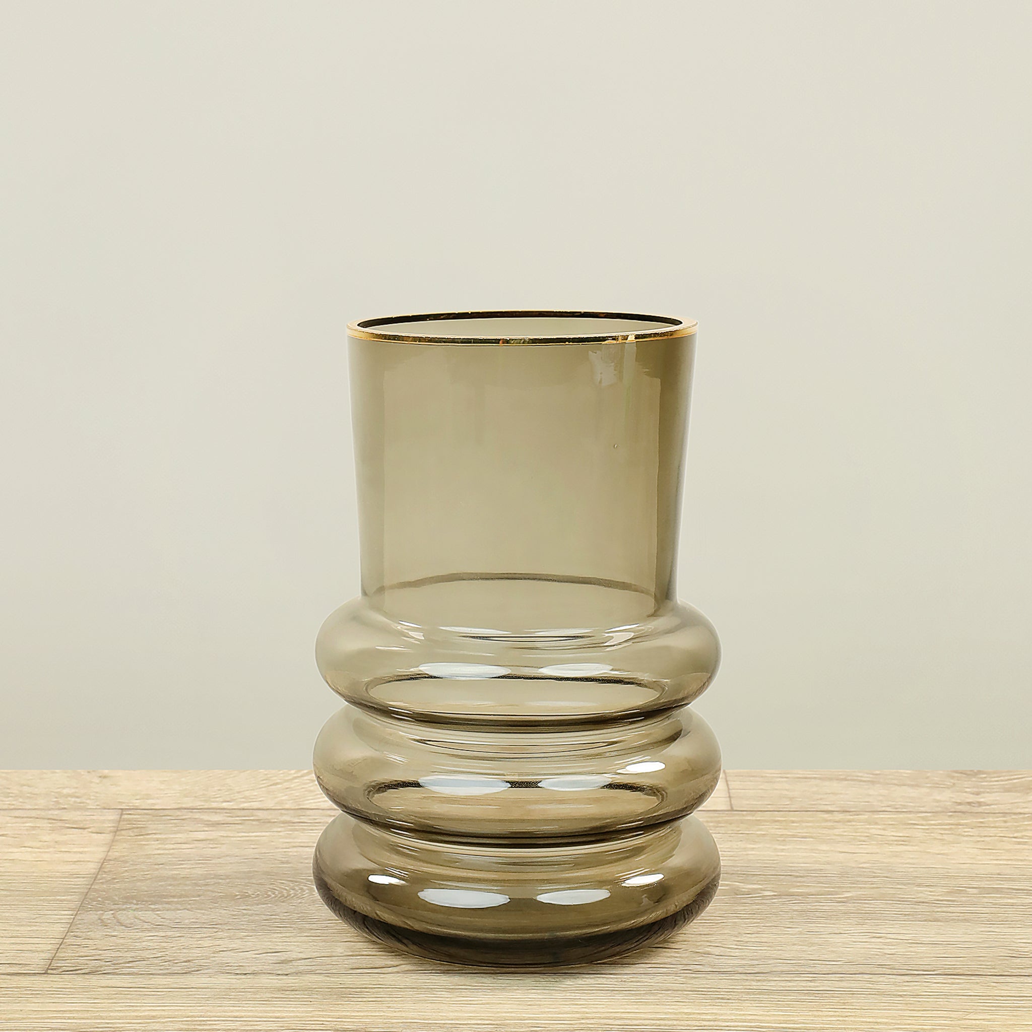 مزهرية زجاجية أنيقة بلون كتان تمنح أي مساحة لمسة دافئة وهادئة. تصميمها البسيط يجعلها مناسبة للديكور المنزلي والمكتبي، وتبرز جمال الأزهار الطبيعية والصناعية على حد سواء.