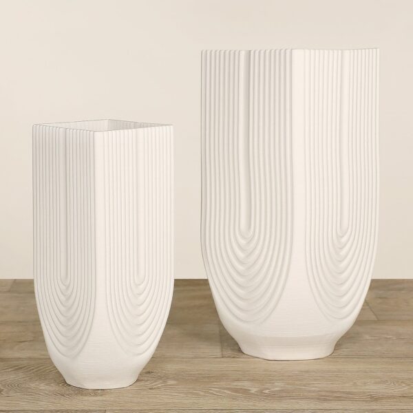 مزهرية سيراميك عصرية أنيقة تضفي لمسة من الرقي.مثالية لعرض الزهور الاصطناعية.تضفي عمقًا وجمالًا على أي مساحة داخلية.مصنوعة بدقة من سيراميك عالي الجودة.تصميم جمالي وفني يبرز التفاصيل.اللون أبيض يكمل مجموعة واسعة من أنماط الديكور.