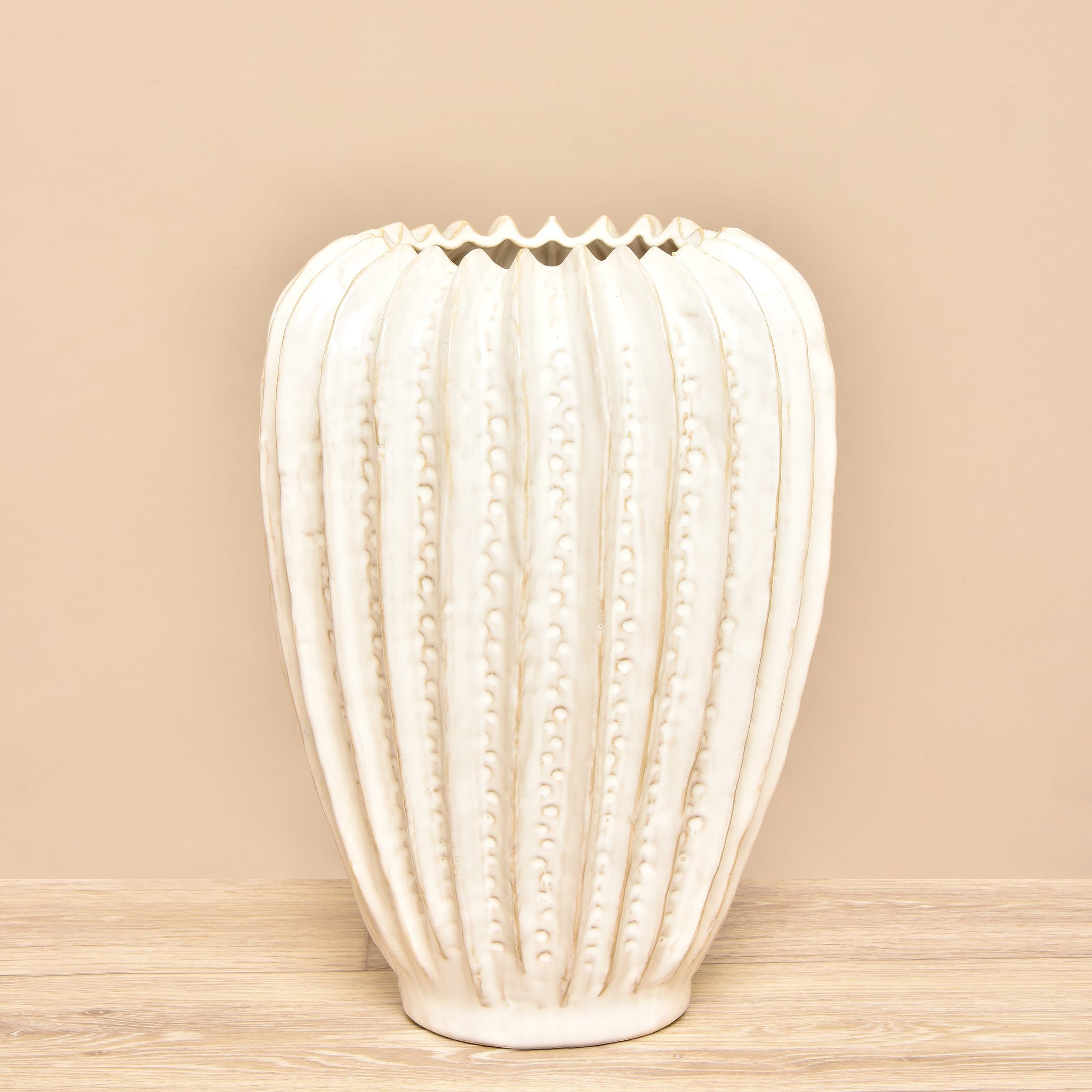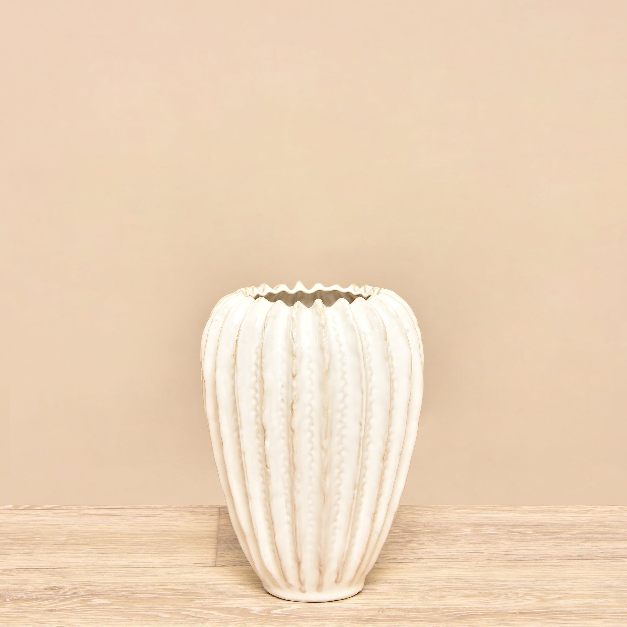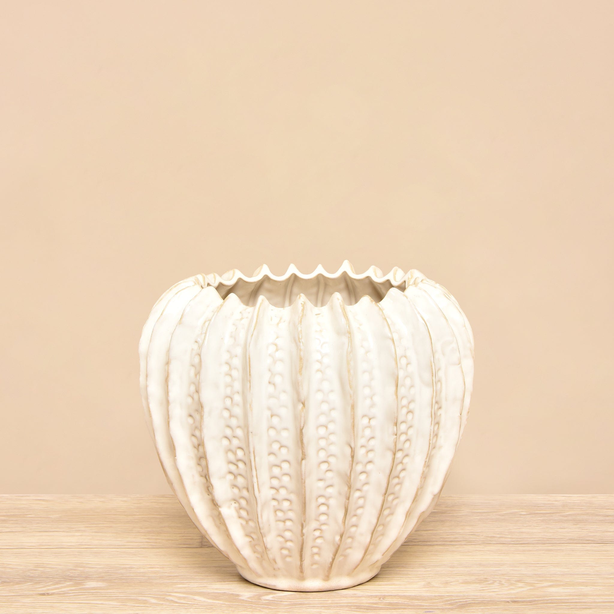 مزهرية سيراميك بسيطة وأنيقة باللون الأبيض، تضيف لمسة من الرقي والبساطة إلى أي ديكور داخلي. تصميمها الكلاسيكي يجعلها مناسبة للزهور الطبيعية أو الصناعية وتنسجم مع مختلف أنماط الديكور.