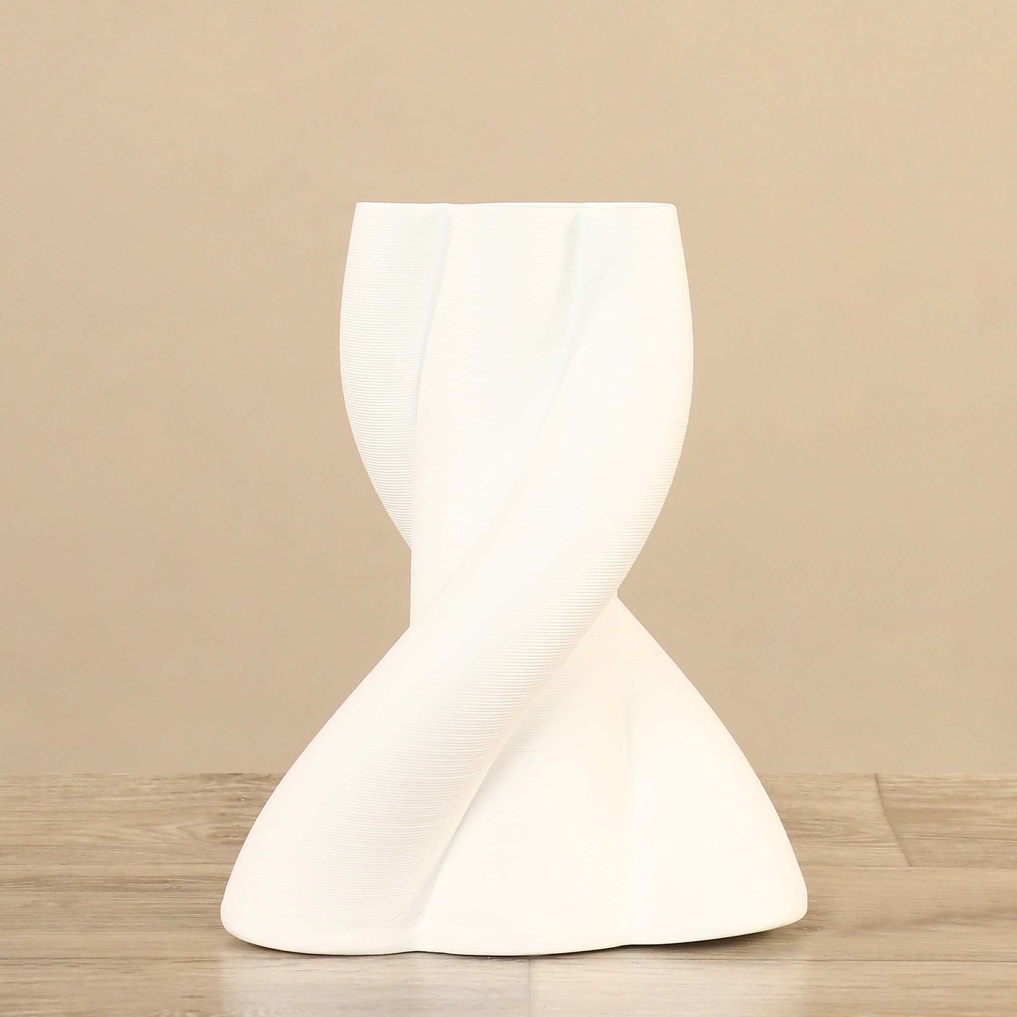مزهرية خزفية أنيقة بتصميم طويل منحني وملتف يجمع بين البساطة واللمسة العصرية. لونها الأبيض النقي يضفي إشراقة هادئة على أي رف أو طاولة، وتناسب المساحات الصغيرة والكبيرة على حدّ سواء.