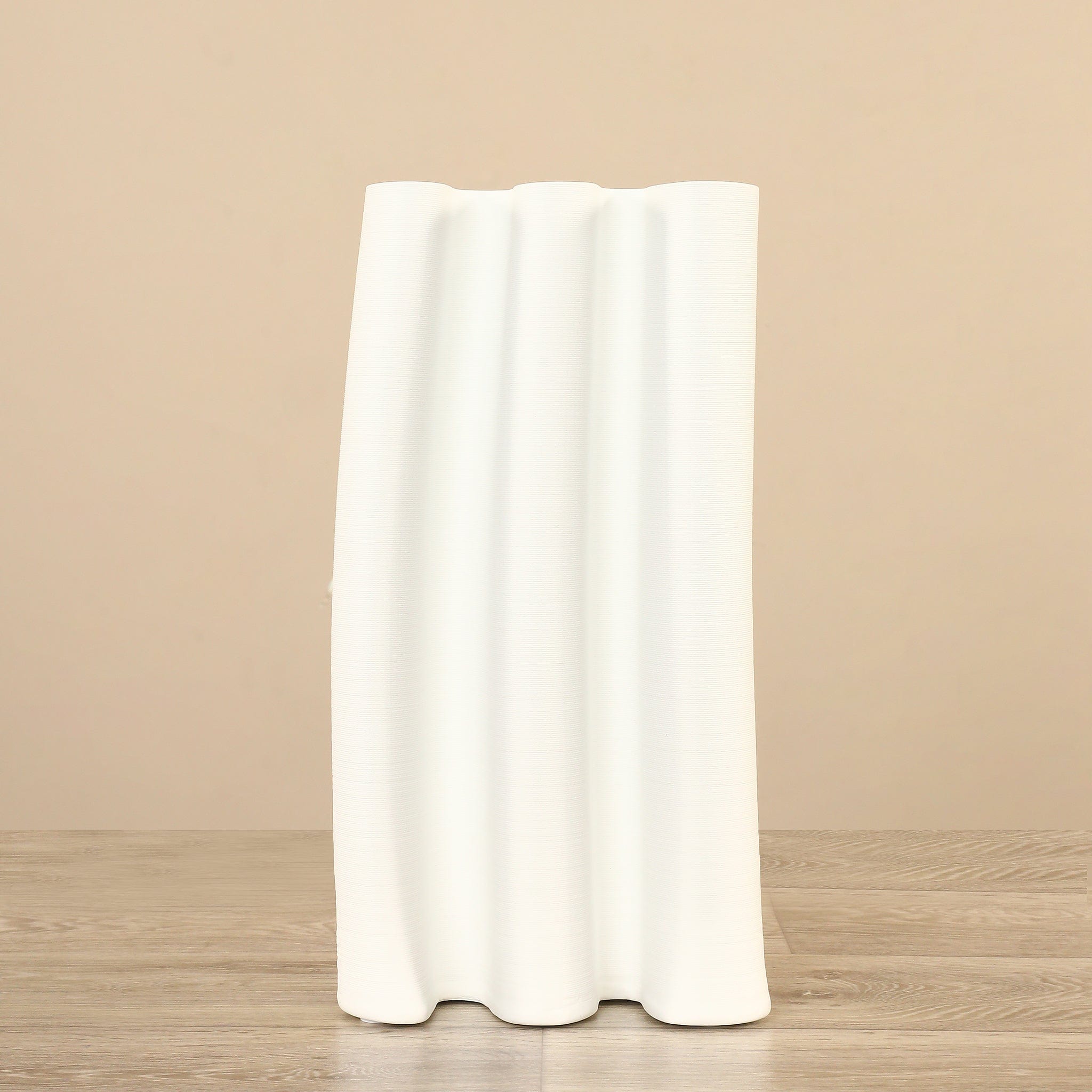 لمسة من البساطة والأناقة تعكسها هذه المزهرية الخزفية. مصنوعة من السيراميك بتصميم عصري على شكل قناة يمنحها مظهرًا أنيقًا وهادئًا، وتناسب أحجام الرفوف والطاولات بشكل مثالي لتضيف لمسة ديكور راقية إلى أي مساحة.