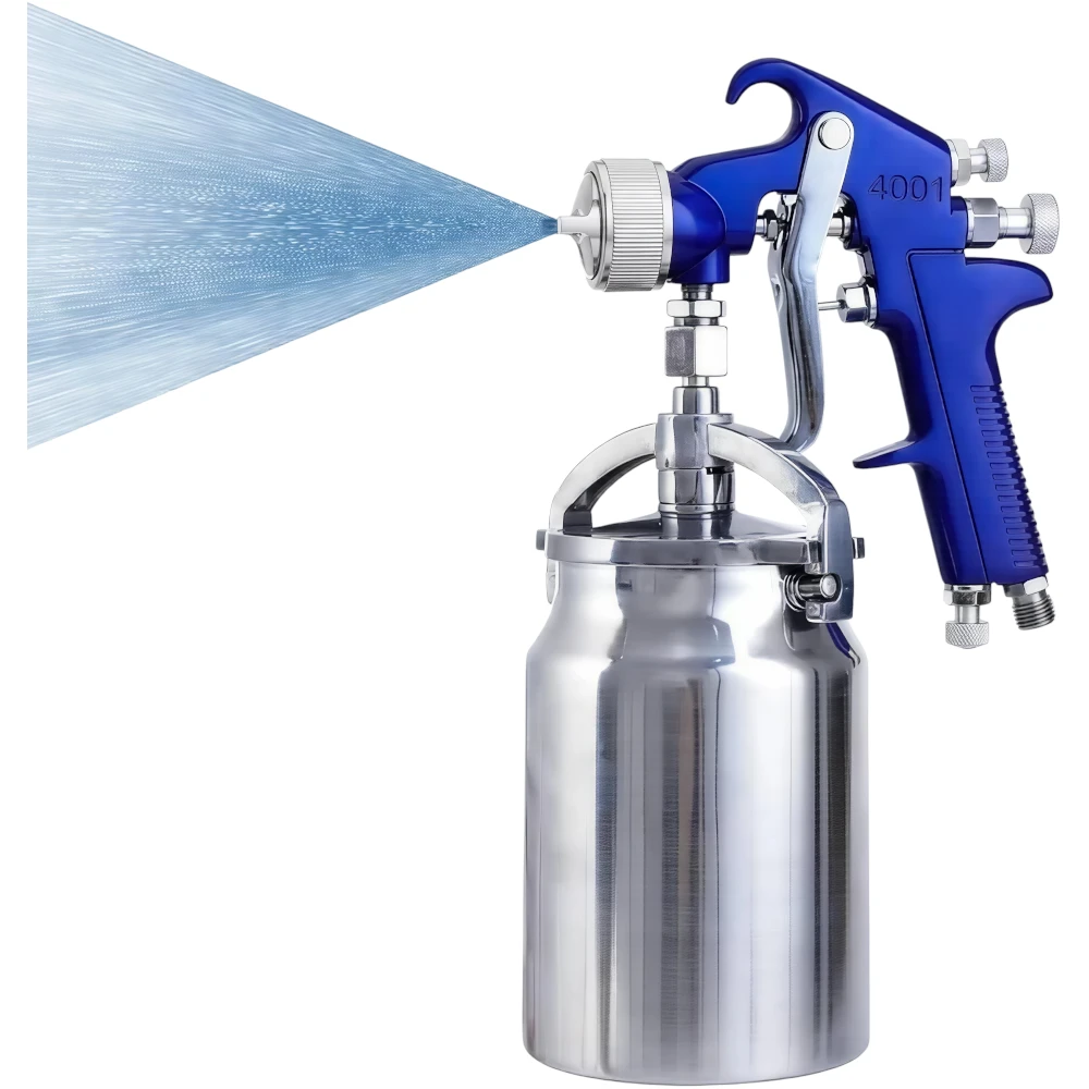 مسدس رش هوائي مزود بخزان سفلي معدني مصمم لتغذية الطلاء بالهواء المضغوط وتطبيق دهانات سائلة على مختلف الأسطح بشكل متجانس واحترافي. يتميز ببناء متين وسهل الاستخدام يناسب الاستخدامات المهنية والهواة.