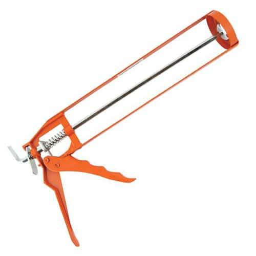 مسدس سيليكون عملي ومتين بلون برتقالي، مصمم لتسهيل تطبيق سيليكون ومواد السدّ المختلفة بدقة وسهولة. مناسب للاستخدام المنزلي والمهني مع تصميم مريح يوفر تحكمًا أفضل أثناء العمل.