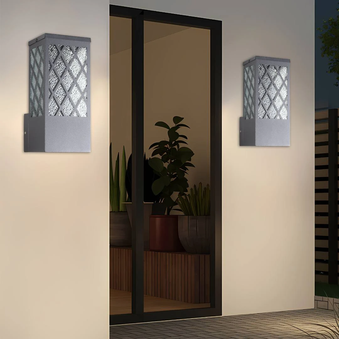 فانوس جداري خارجي باللون الأسود مع قاعدة لمبة من نوع E27، يجمع بين مظهر أنيق ووظيفة إضاءة عملية. يمنح الجدران والأسوار الخارجية لمسة جمالية ويُحسّن الرؤية والمسارات عند المدخل أو الممرات الخارجية.