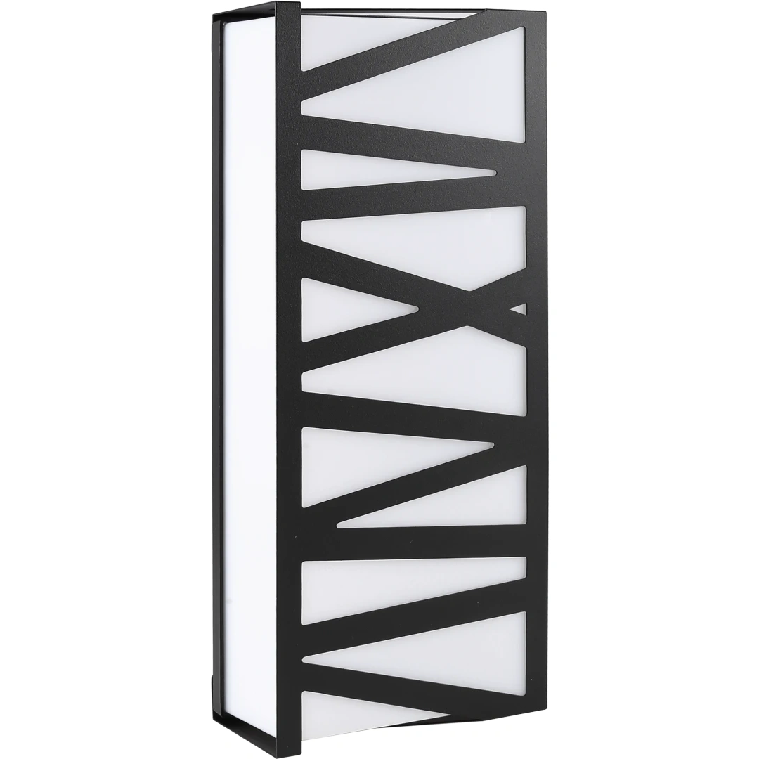 مصباح جداري خارجي بتصميم مستطيل أنيق باللون الأسود، يعطي ضوءًا أصفر دافئًا ومريحًا. يجمع بين مظهر عصري ووظيفة عملية لتوفير إضاءة فعّالة لمنطقة المدخل والبوابة والممرات الخارجية.