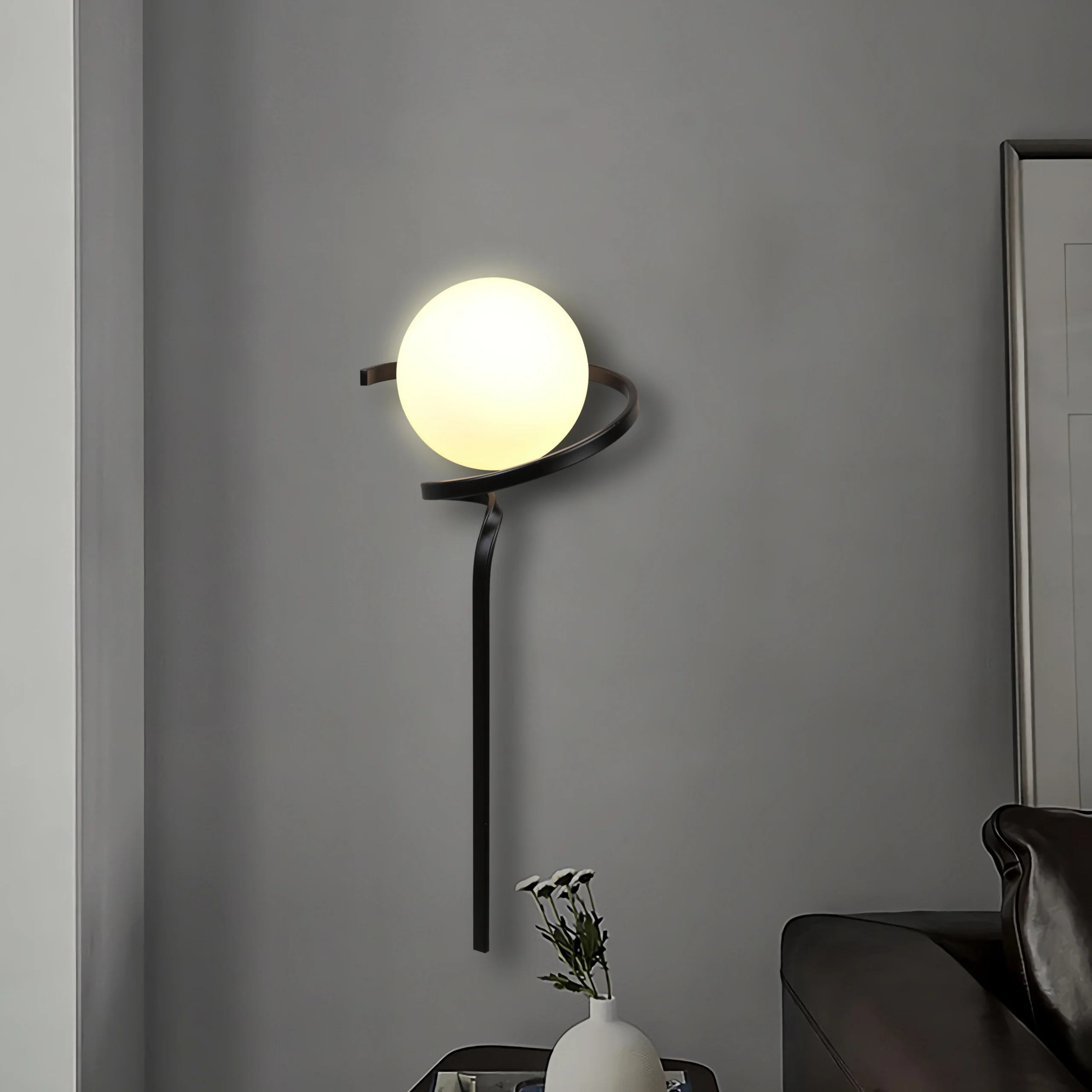 مصباح جداري مودرن بقاعدة لمبة E27، جسم أسود أنيق يناسب ديكورات متعددة — من الصالات وغرف النوم إلى الممرات والمكاتب. تصميم مفرد ومضغوط يوفّر إضاءة مميزة دون أن يطغى على تفاصيل الديكور.