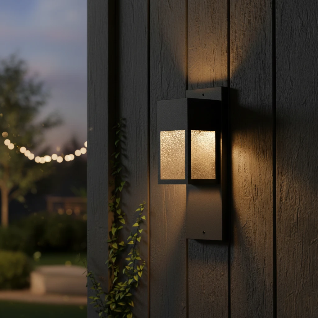 فانوس جداري خارجي باللون الأسود مصمم لمصابيح GU10. يمنحك إضاءة موجهة وأنيقة تبرز اللون والملمس الطبيعي للجدار، مما يضفي مظهرًا جذابًا وعصريًا على الواجهات والمساحات الخارجية.