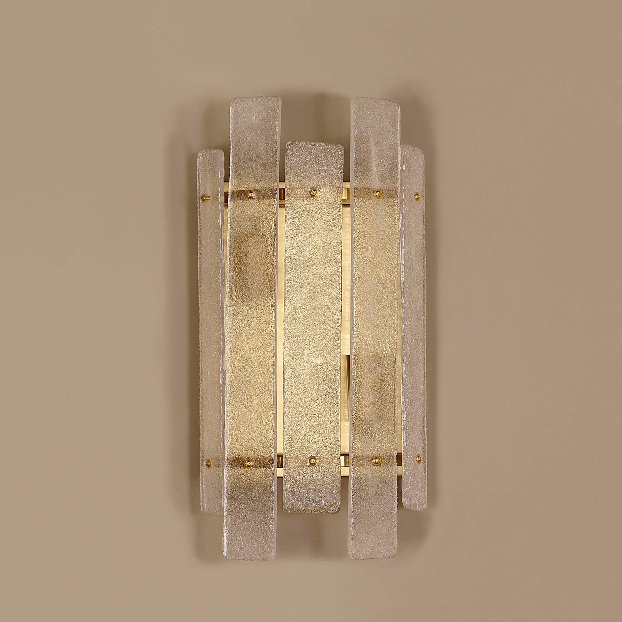 مصباح جداري بتشطيب نحاسي عتيق وتصميم أنيق، مصنوع من المعدن والزجاج ليمنح إضاءة مريحة ومظهرًا كلاسيكيًا للمكان.