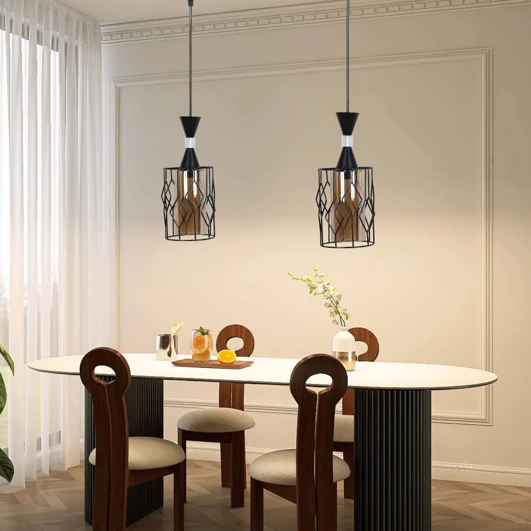إضاءة معلقة عصرية بلون أسود مطفي، مصممة لزيادة أناقة المساحات الداخلية مع دعم لمبات من نوع E27. مثالية لغرف الطعام، الممرات، المطابخ أو فوق طاولة العمل حيث تجمع بين البساطة والأداء العملي.