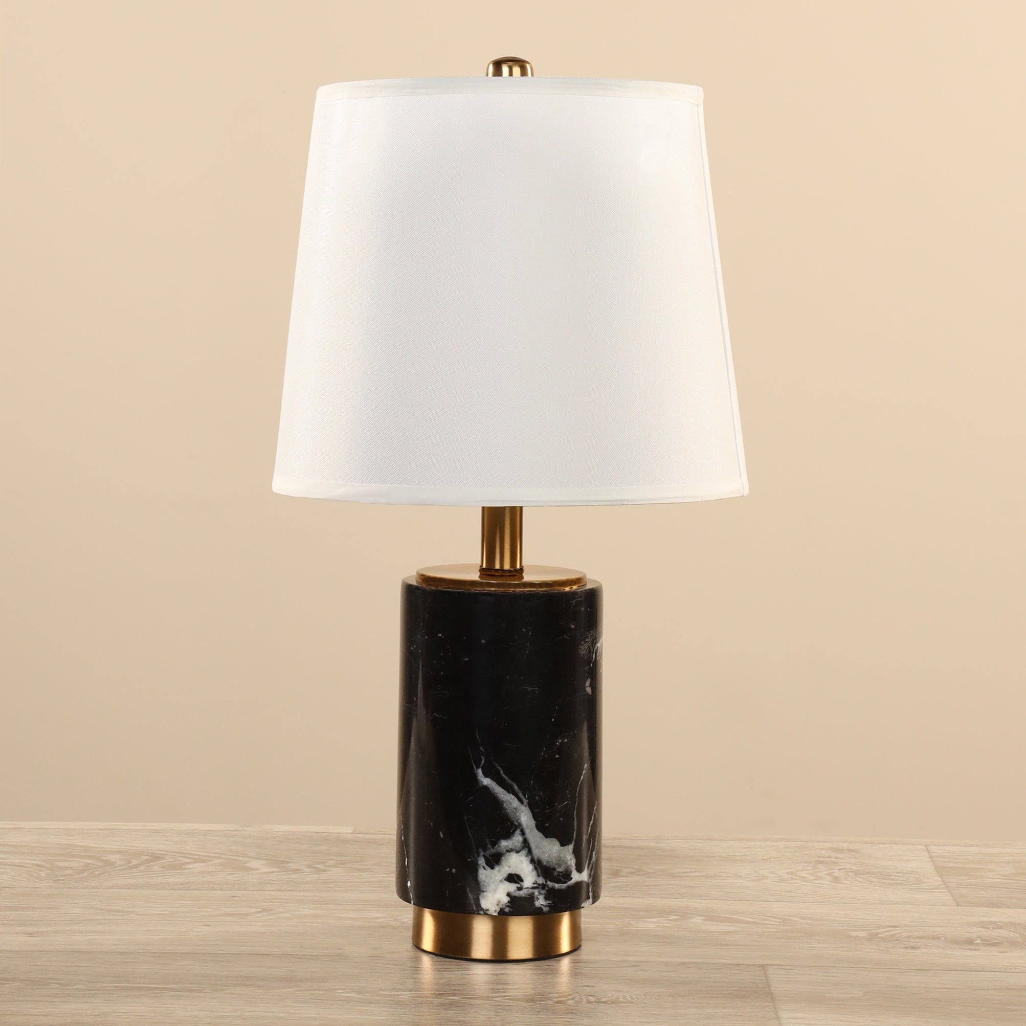 أباجورة أنيقة تجمع بين متانة المعدن وجمال الرخام الطبيعي، تصميم مثالي لإضفاء لمسة فاخرة ودافئة على منزلك أو مكتبك.