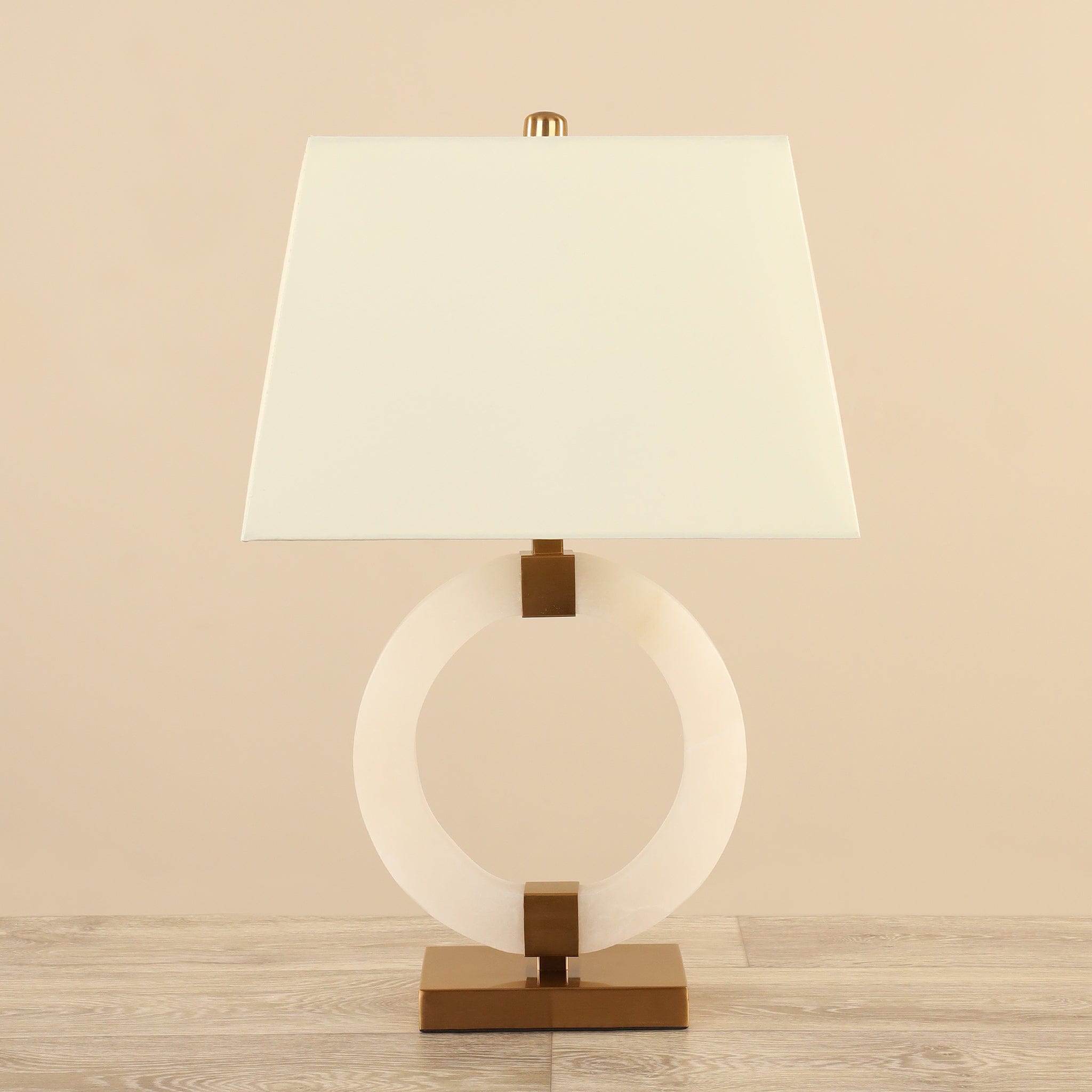 أباجورة أنيقة تجمع بين الفخامة والبساطة، بتصميم يجمع قاعدة رخامية وقطع معدنية بلون ذهبي مع غطاء قماشي ناعم. مناسبة لإضاءة موضعية في غرفة النوم، غرفة الجلوس أو على مكتب العمل لإضفاء لمسة ديكور راقية.