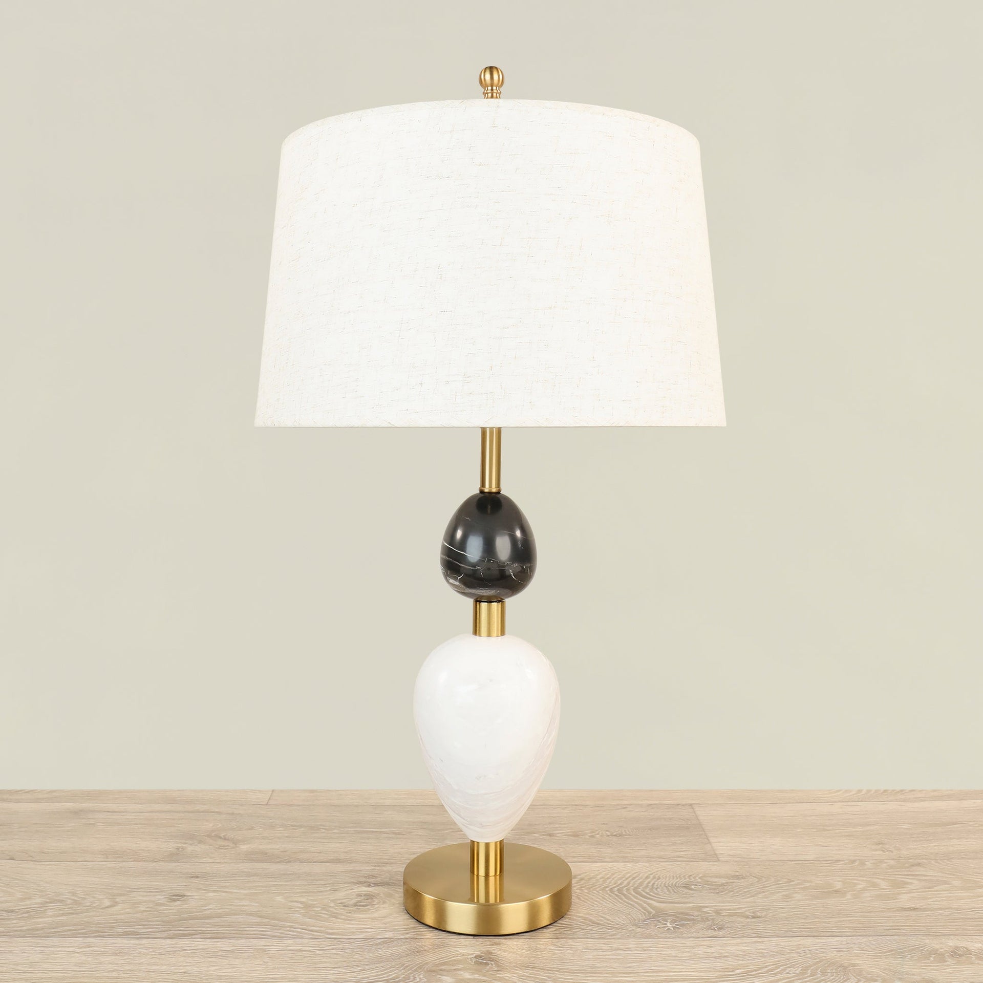 أباجورة أنيقة تجمع بين لمسة معدنية عصرية ودفء الرخام الطبيعي، تصميم مناسب للصالات وغرف النوم والمساحات الداخلية الراقية.