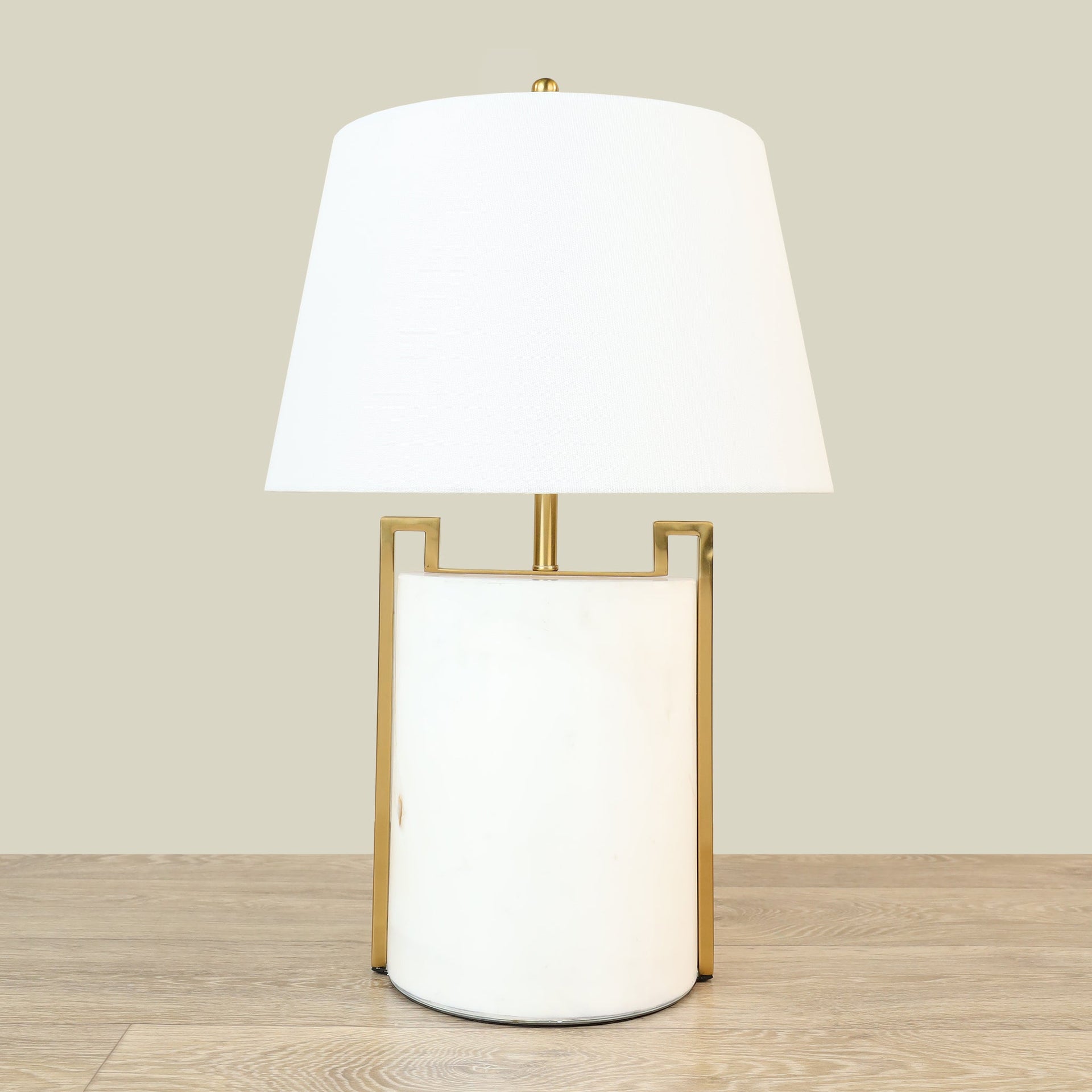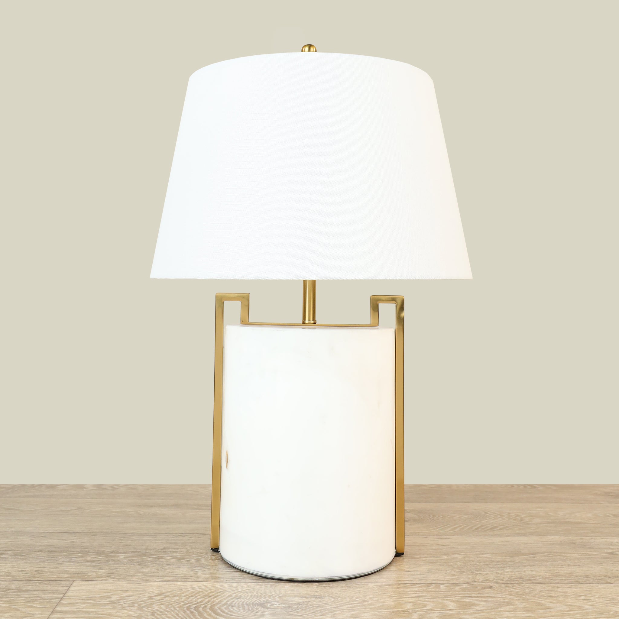 أضف لمسة من الأناقة الهادئة إلى مساحتك مع هذا المصباح الطرابي المميز. يتميز بقاعدة من الرخام الأبيض النقي تزنّها لمسات ذهبية أنيقة، ما يجمع بين الجمال العملي والتصميم الراقي ليُثري أي غرفة—from غرفة النوم الرئيسية إلى المكتب التنفيذي.
