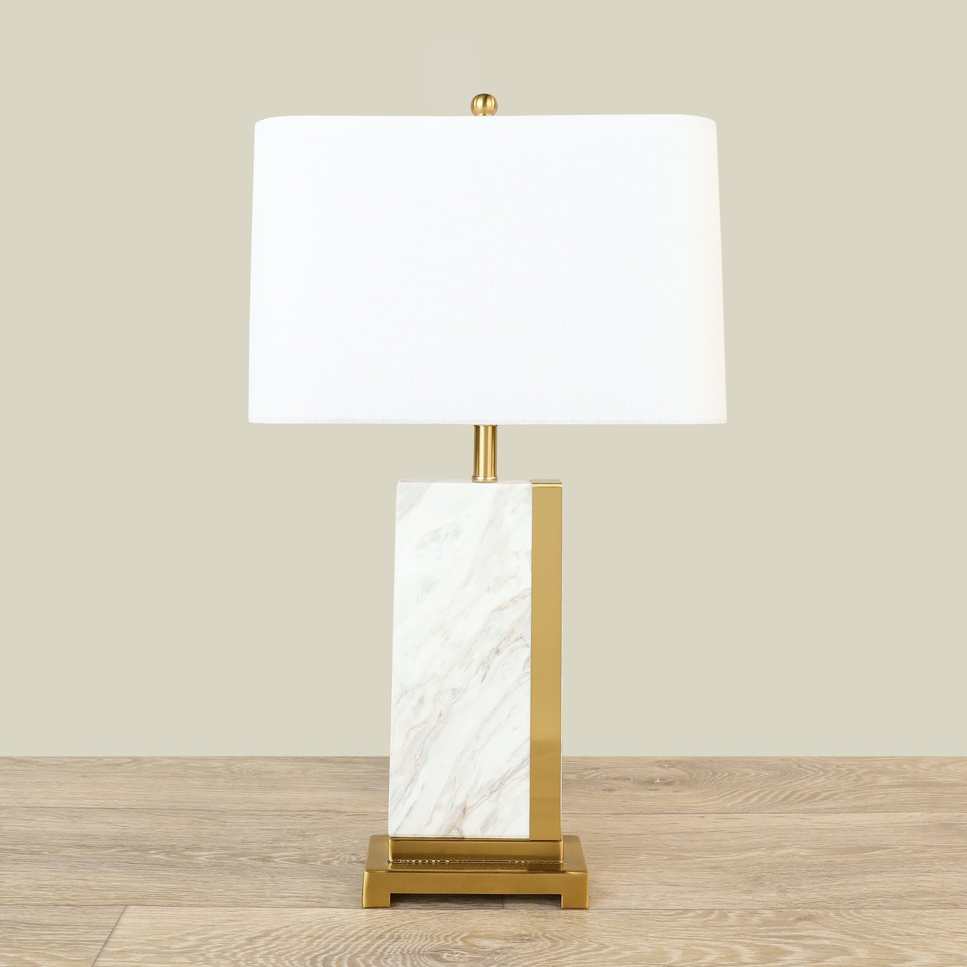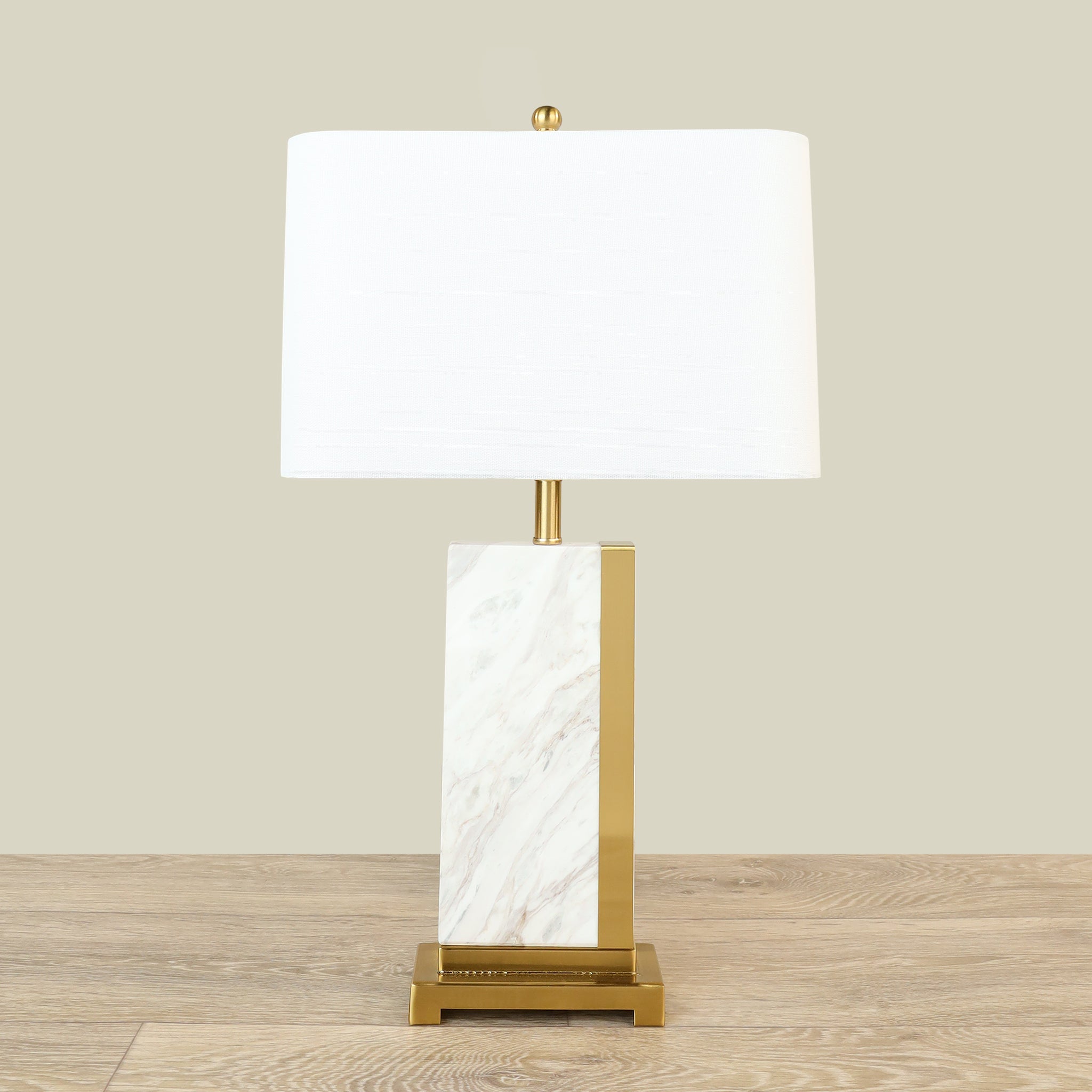 أضف لمسة من الفخامة الهادئة إلى منزلك مع مصباح طاولة يجمع بين روعة الرخام وسلاسة المعدن. الطلاء الذهبي الدافئ يمنح القطعة توازناً مثالياً بين الأناقة الكلاسيكية والبساطة العصرية، ليصبح عنصرًا جذابًا يبرز في أي مكان يوضع فيه.