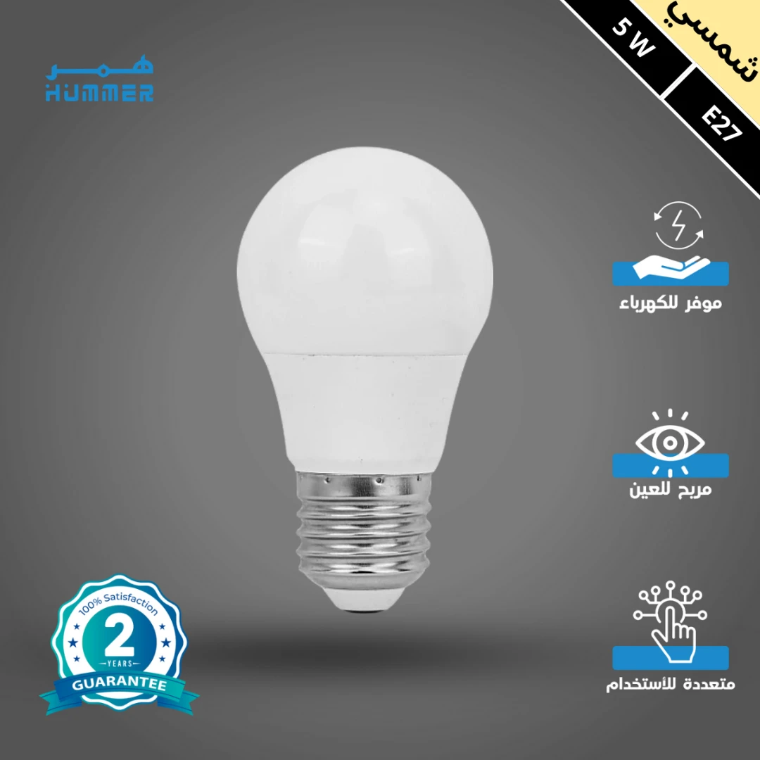 اكتشف توازن الإضاءة بين الدفء والوضوح مع لمبة LED الكروية من ماركة همر (Hummer)، المقدمة عبر كهرباء الجنوب للإنارة. تصميمها الكروي (كوع كروية) يوفر ضوءًا شمسيًا كريميًا بدرجة حرارة لونية معتدلة 4000 كلفن، ما يمنح بيئة مريحة للعين ومناسبة للاستخدام المنزلي والمكتبي.