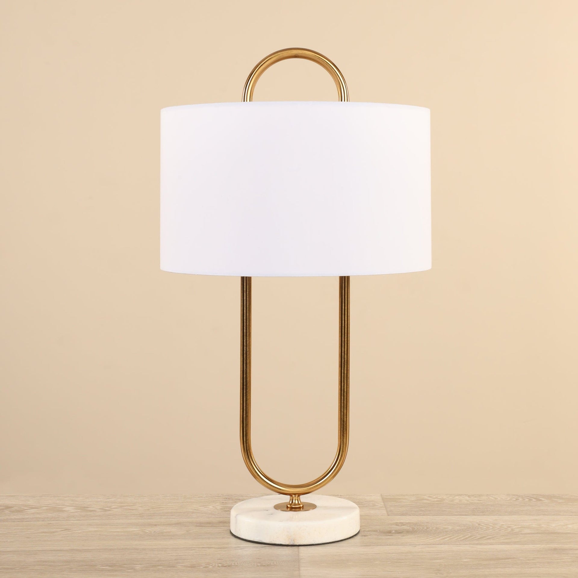 أباجورة أنيقة بلمسة ذهبية تضفي دفئاً وفخامة على أي مساحة داخلية، مصممة بخامات متينة ومظهر عصري يناسب غرفة المعيشة، غرفة النوم أو المكتب.