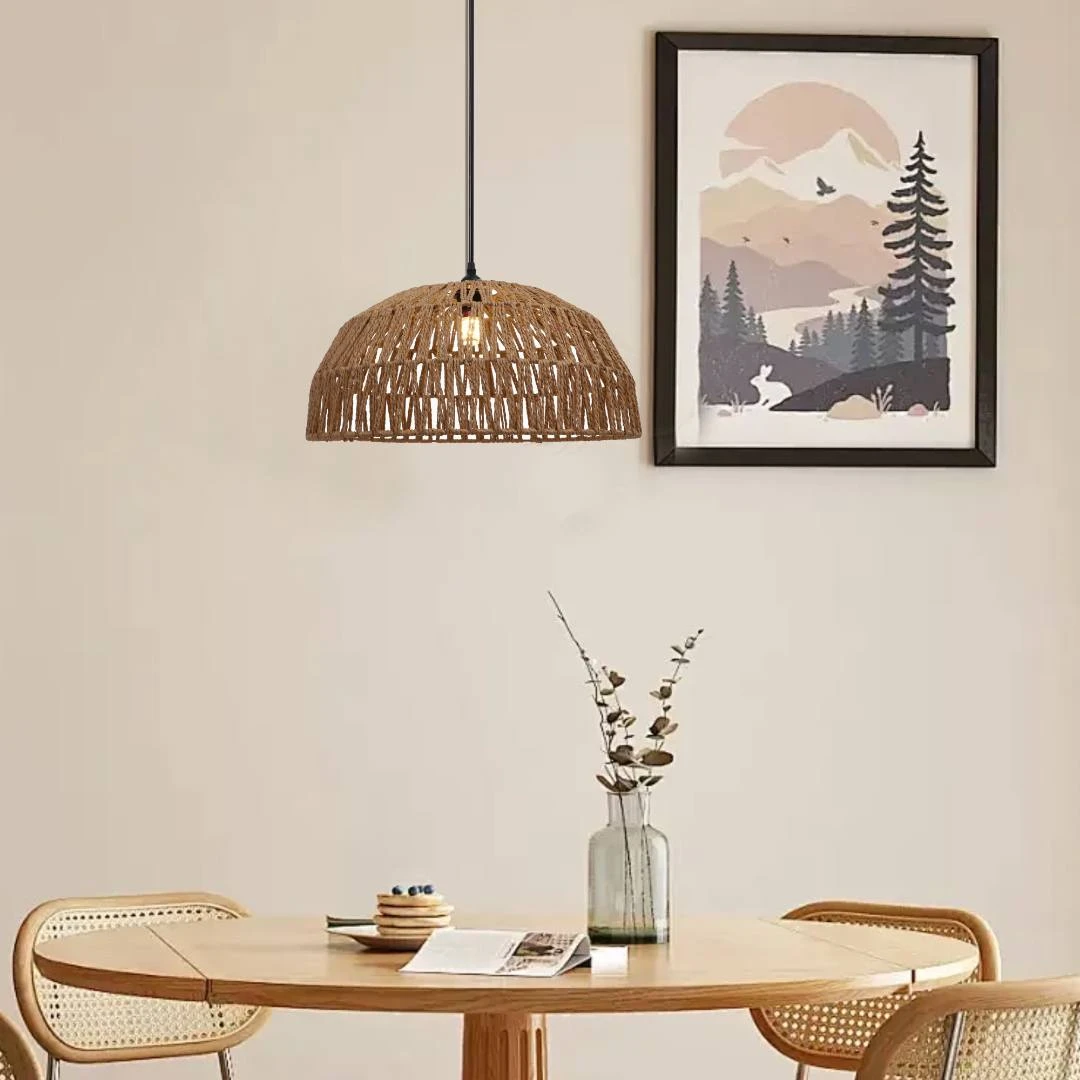 مصباح معلق بتصميم خيزران طبيعي على شكل أدغال متدلية، يجمع بين الطابع الريفي والأناقة العصرية. مثالي لإضفاء جو دافئ وطبيعي على المساحات الداخلية مثل غرف المعيشة، المطابخ، المقاهي والمطاعم.