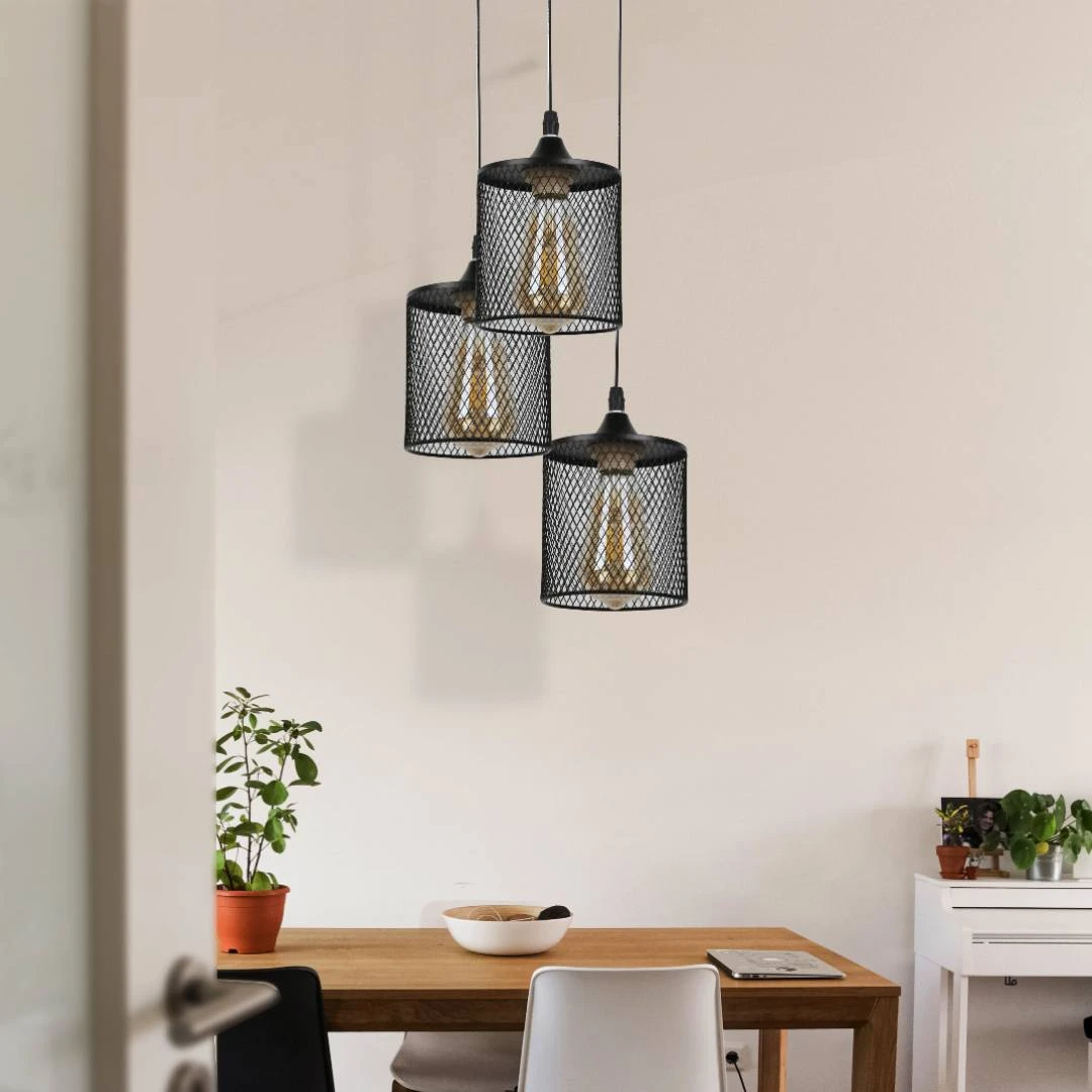 مصباح معلق مودرن ثلاثي أسود بمقبس E27