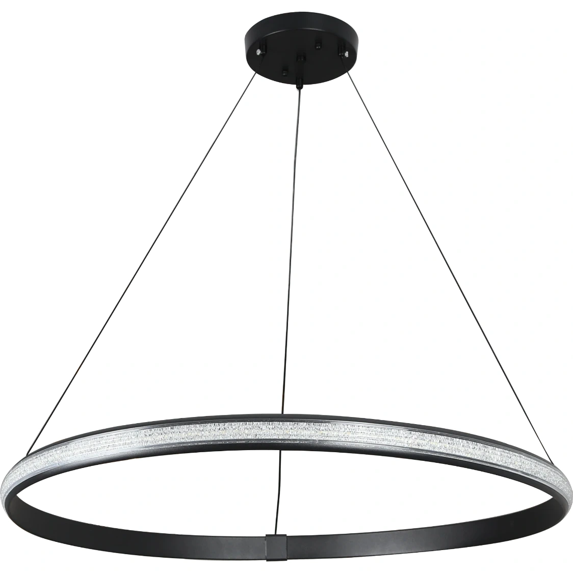 وحدة إضاءة معلَّقة بتصميم مودرن ومدوّر باللون الأسود، بطول 60 سم وقدرة 42 واط، مع ثلاث إعدادات للإنارة تتيح لك ضبط مستوى أو درجة الضوء حسب الحاجة.