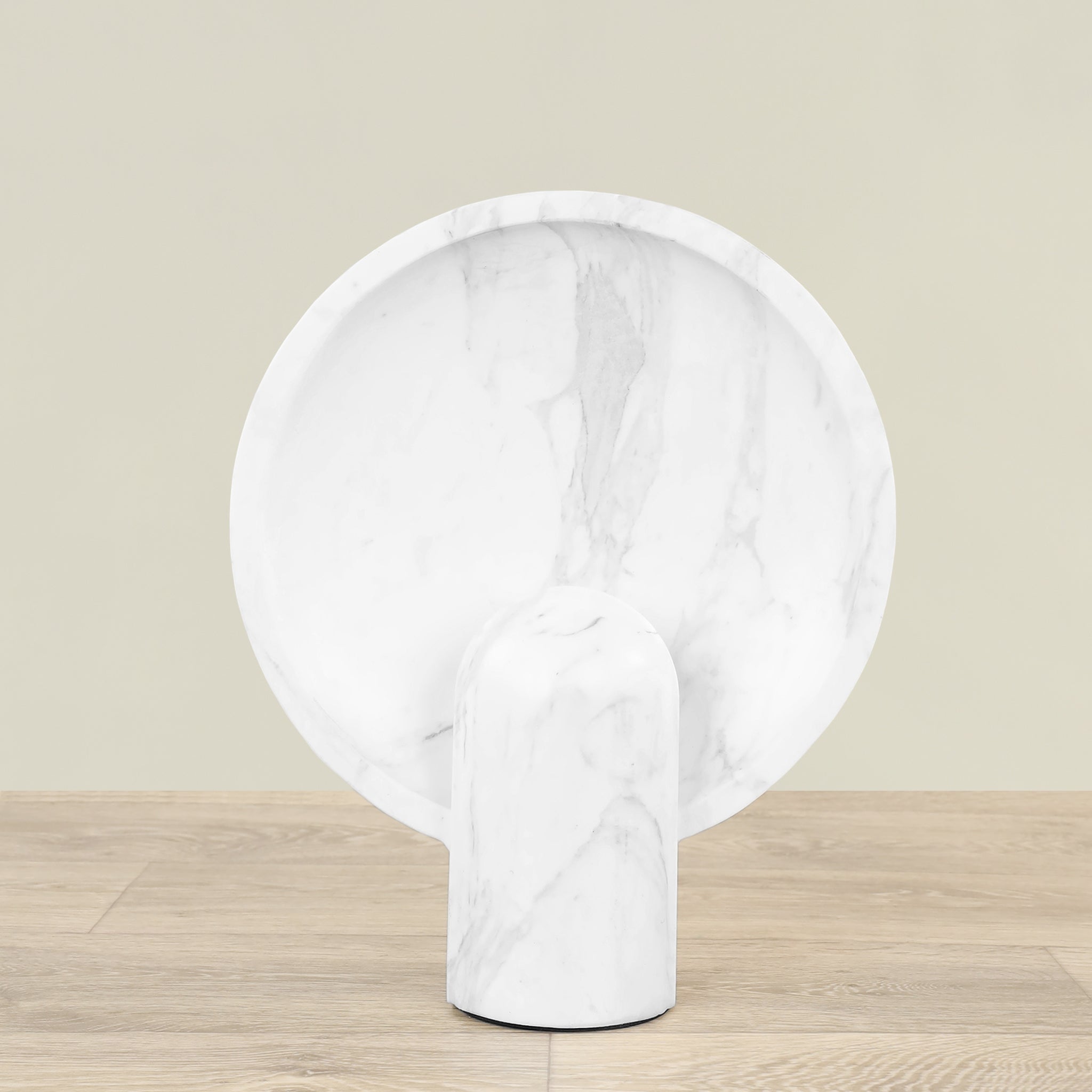 - قاعدة من رخام طبيعي بعروق فريدة — كل قطعة فريدة من نوعها.