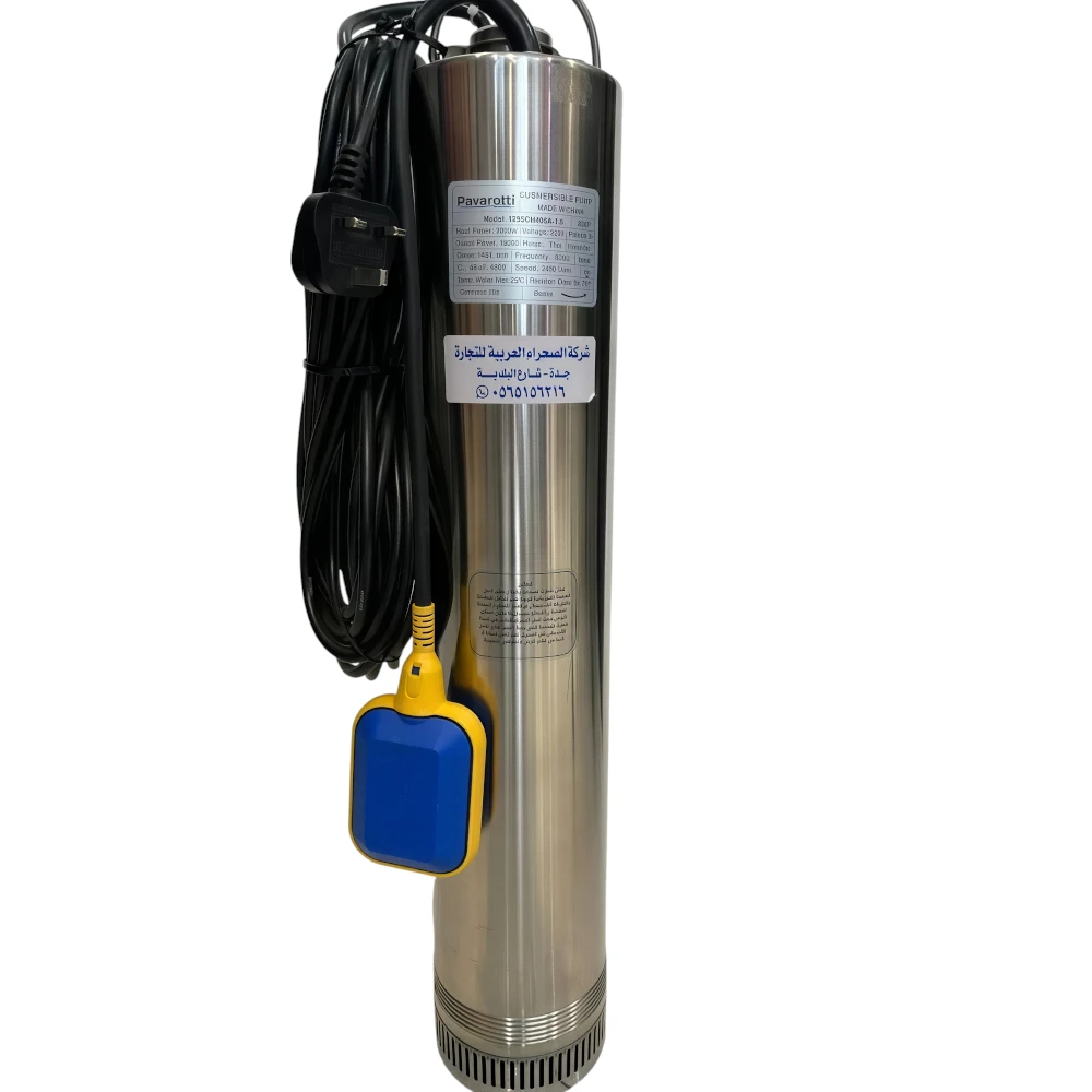 مضخة غاطسة للمياه بافاروتي 2 حصان، مخرج 1.25 بوصة، ارتفاع رفع حتى 71 متر، سلك 12 متر مع عوامة