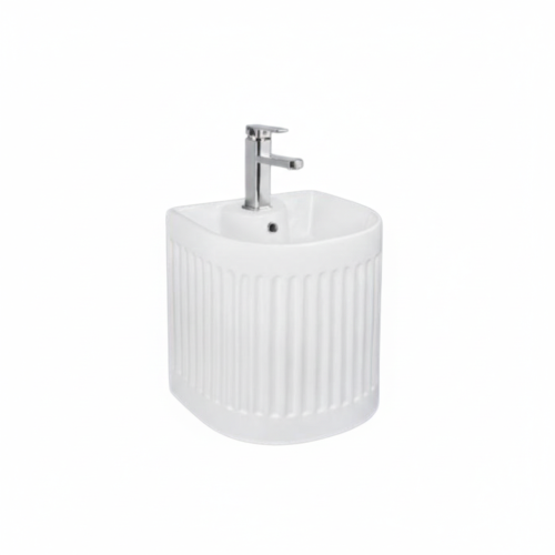 مغسلة حائطية سيراميكية مربّعة بتصميم عصري ومحزّز — أبيض