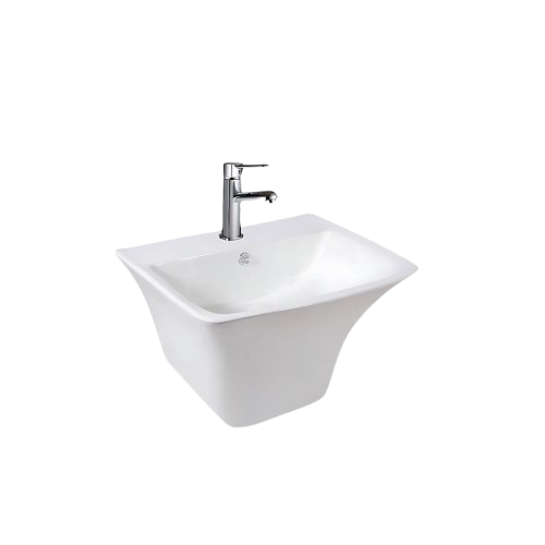 مغسلة بورسلان جدارية بتصميم عصري – أبيض