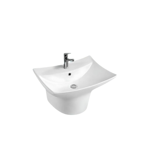 مغسلة جدارية من بورسلان بتصميم عصري وأنيق باللون الأبيض النقي، تجمع بين الجمال والوظيفة. توفر تركيباً جداريًا يوفر المساحة ويمنح الحمام مظهراً صافياً وراقياً، مع سطح سهل التنظيف ومقاوم للبقع.