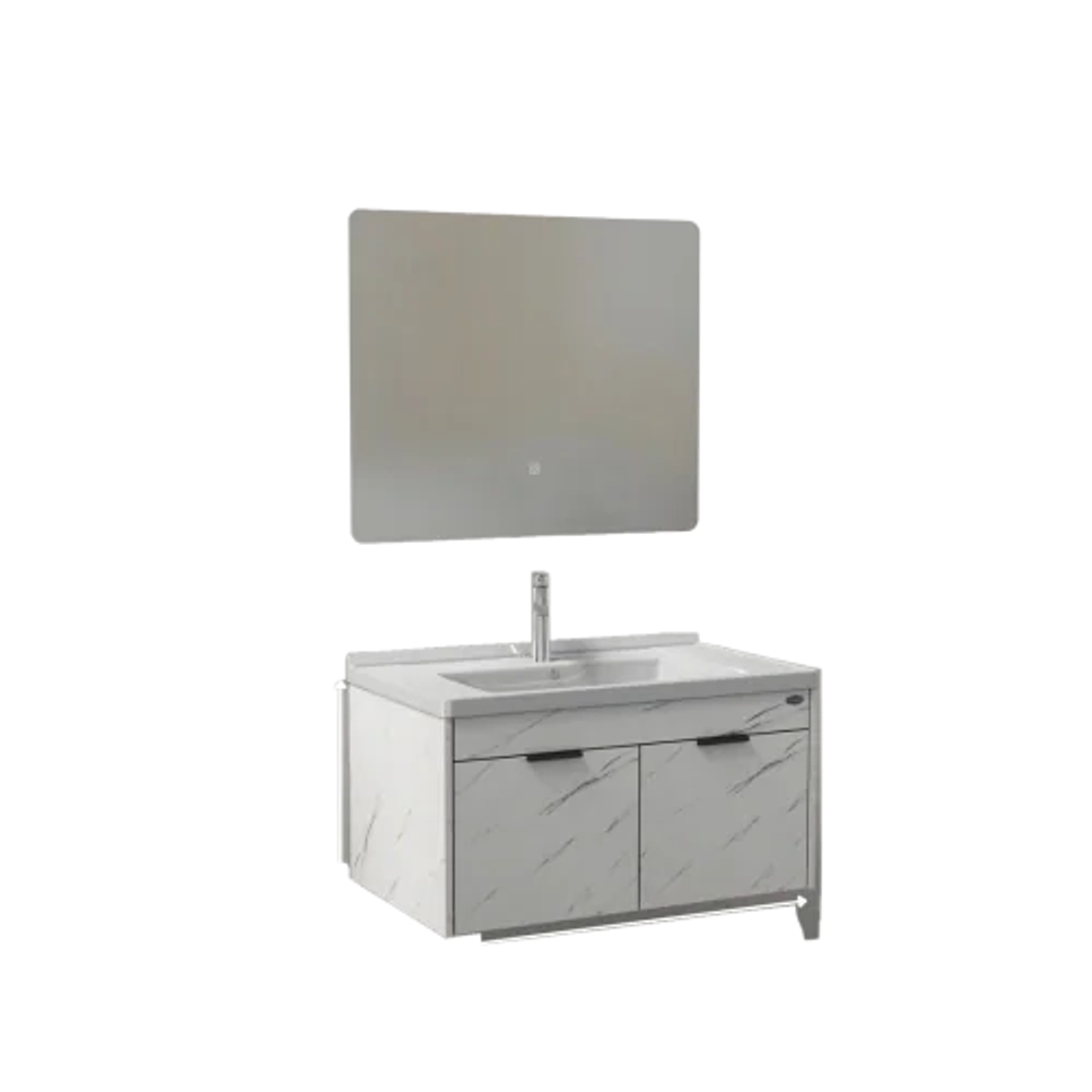 مغسلة حمام خشب بلايوود مع مرآة LED — فيراجو — 80 سم — أبيض