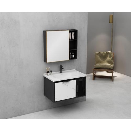 مغسلة حمام معلقة مع مرآة من BEBO — ألومنيوم مقاوم للماء، 80 سم (أسود / أبيض)