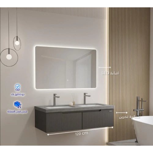 لأنها تجمع بين مظهر فاخر ومواد عملية مقاومة للرطوبة، وتمنحك حوضين وإضاءة LED مدمجة لتجربة يومية مريحة ومنظمة في حمامك.