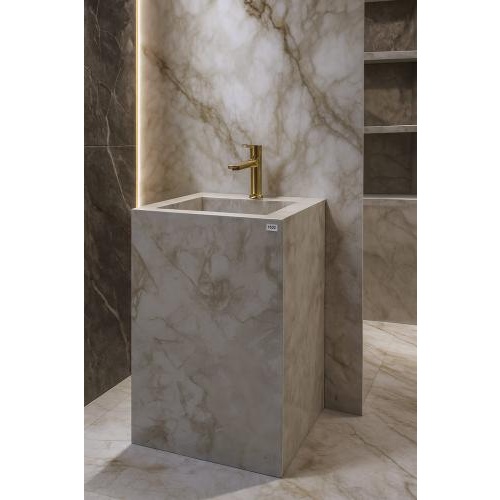 • مغسلة قائمة بذاتها من الرخام الفاخر بحوض واحد لتصميم حمام أنيق ومميز.