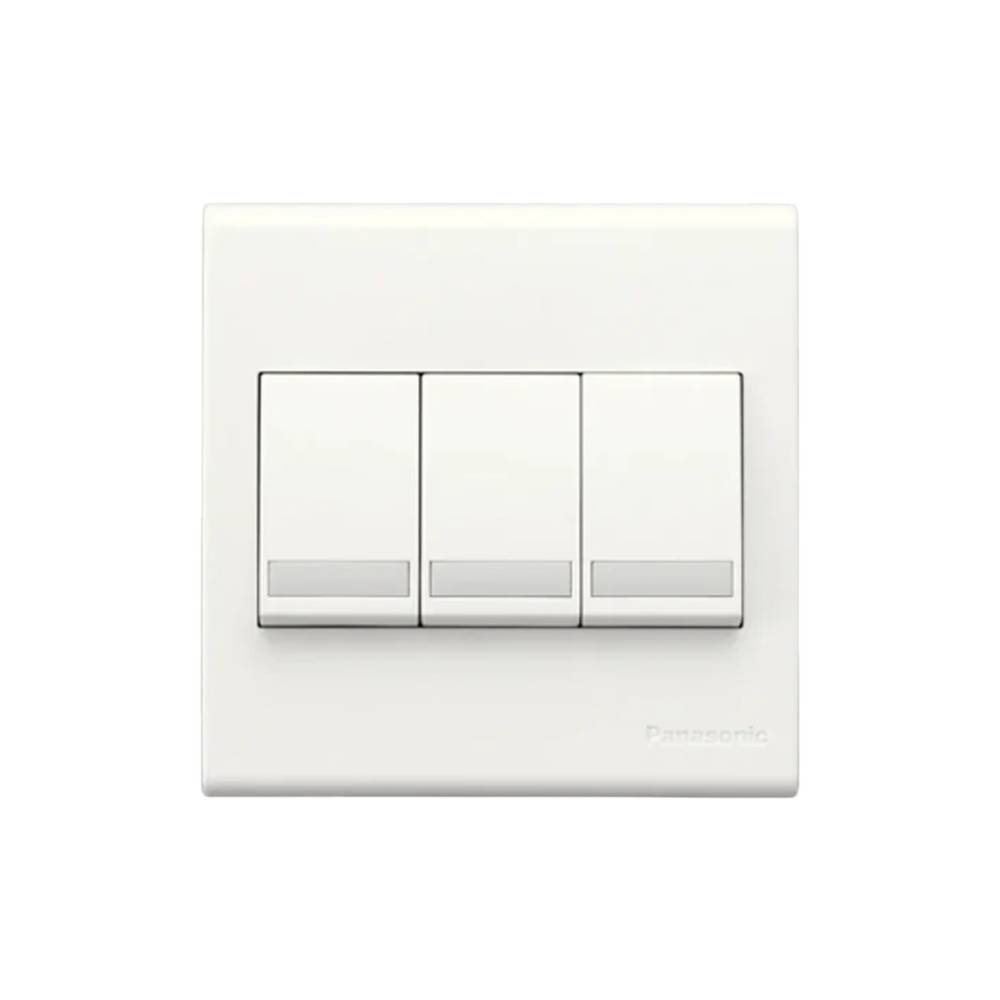 مفتاح ثلاثي من Panasonic مصمم للتحكم بثلاثة دوائر كهربائية من نقطة واحدة، يتحمّل تيارًا حتى 16 أمبير. يتميز بتصميم عريض يسهل الضغط ومواد عالية الجودة مقاومة للاشتعال والتآكل، ما يوفر أداءً آمنًا ومستقرًا لعمر افتراضي طويل.
