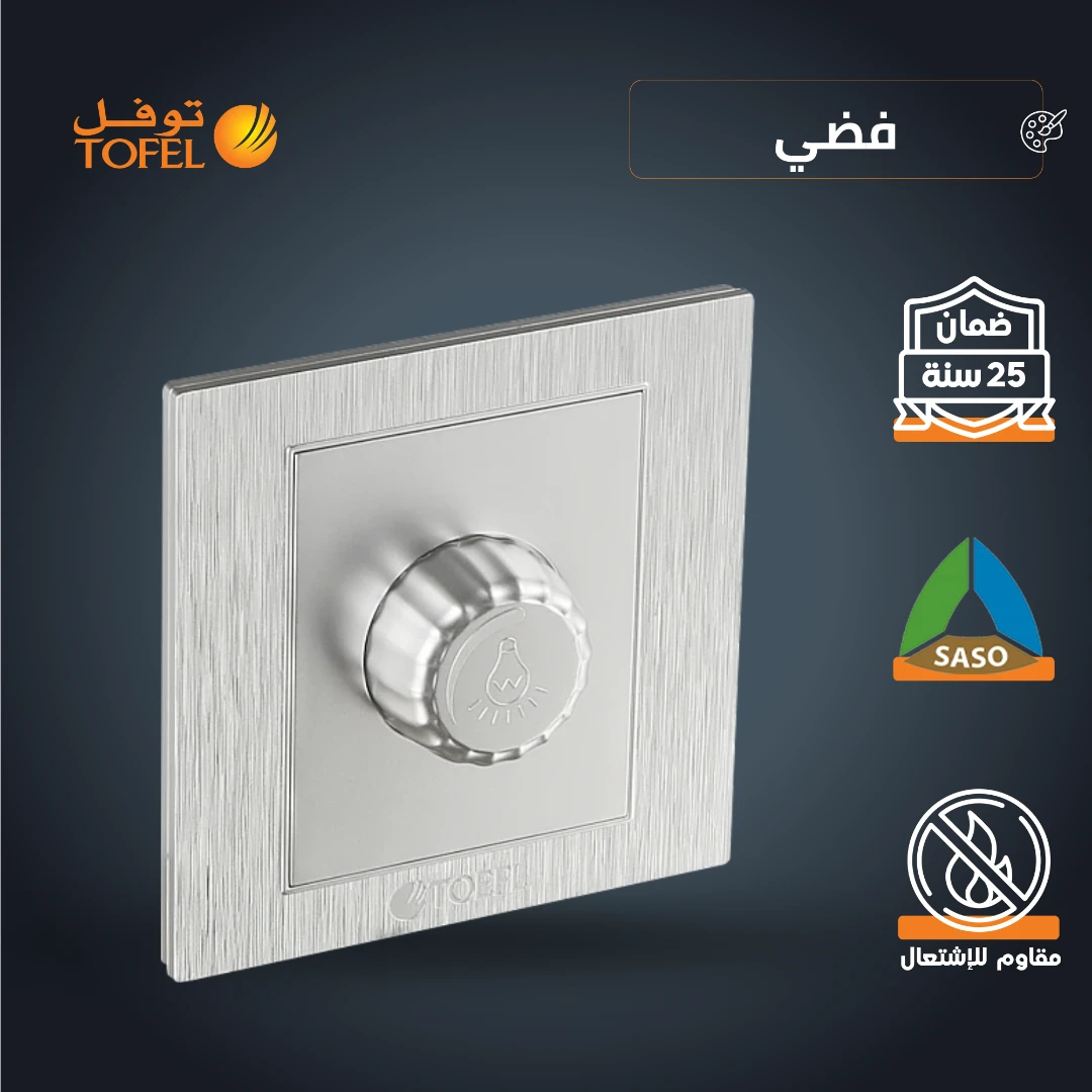 مفتاح دايمر للتحكم بإضاءة اللمبة 1000 واط — لون فضي توفل