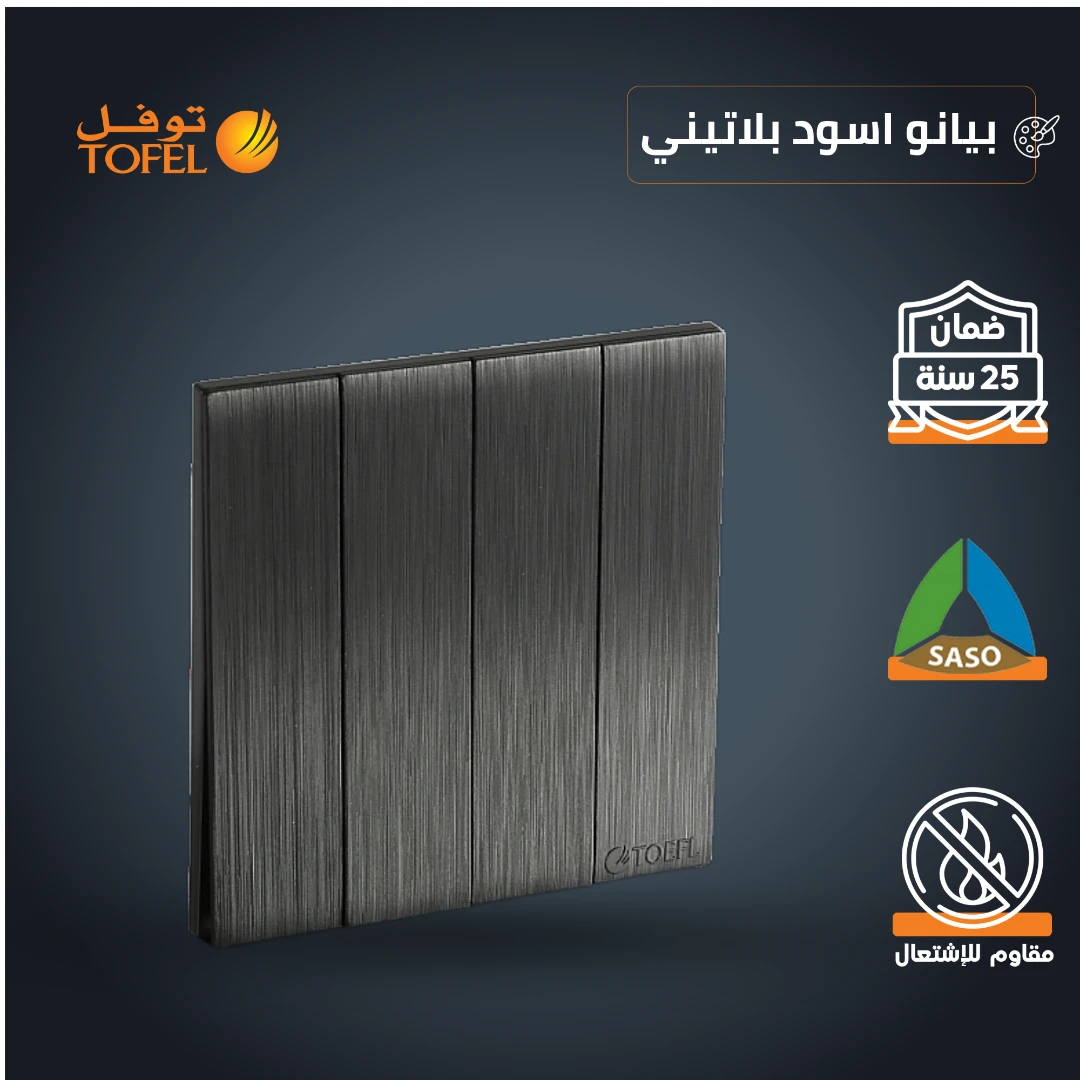 مفتاح رباعي لون أسود بيانو بلاتيني