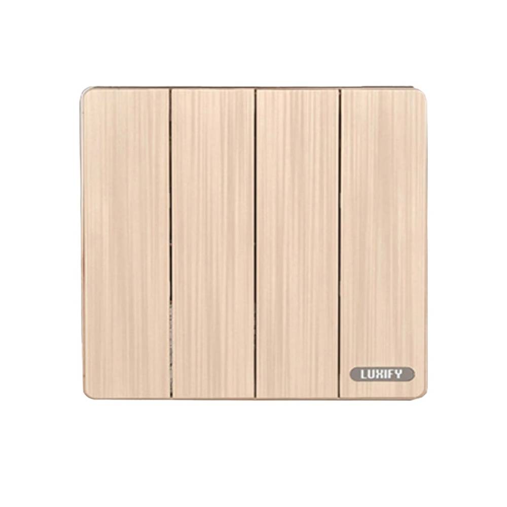 مفتاح رباعي عالي الجودة من LUXIFY بمظهر ذهبي أنيق، مصمم لتحمّل تشغيل الأجهزة الكهربائية حتى قدرة 16 أمبير مع أداء موثوق وطويل الأمد.