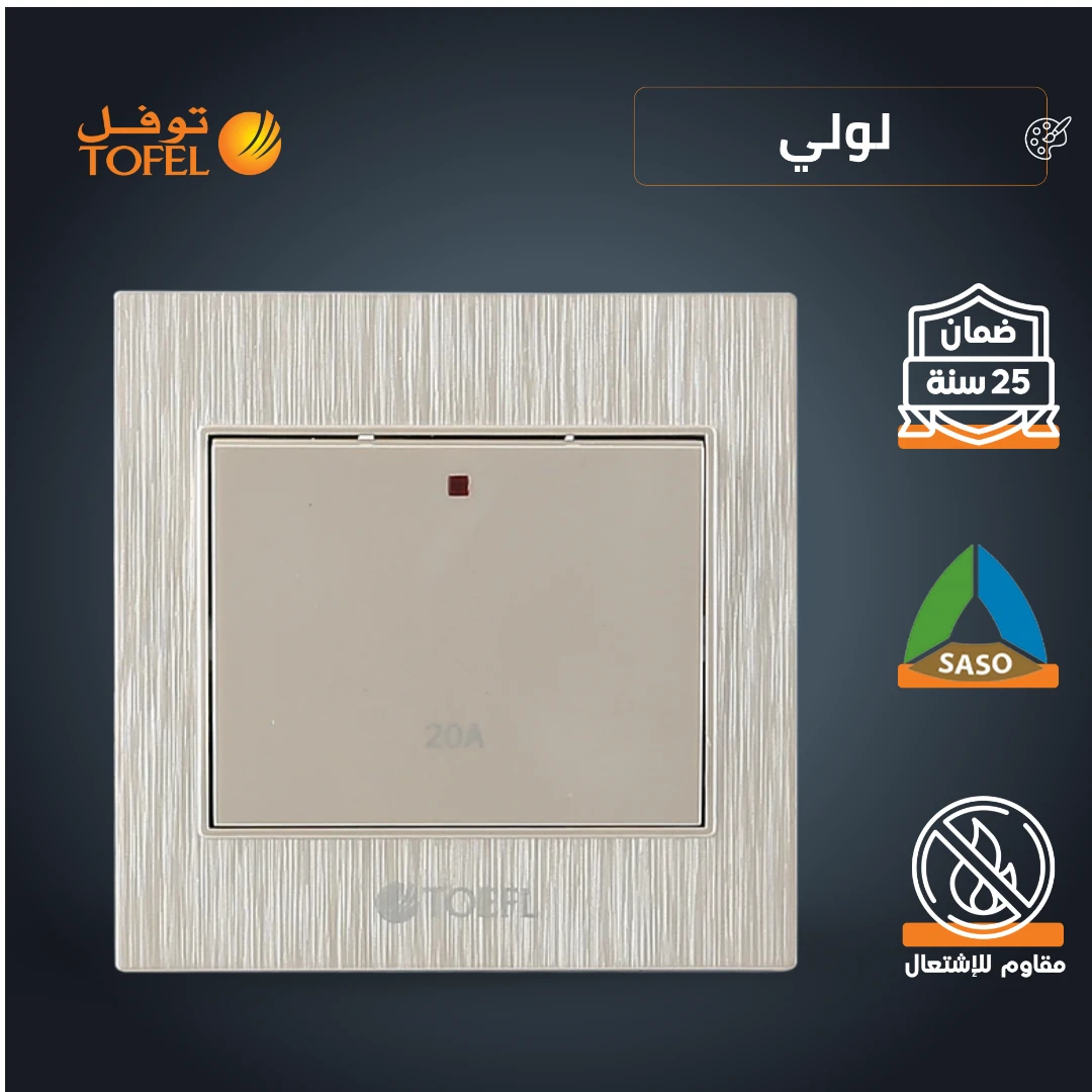 مفتاح سخان مربع 20 أمبير — لون لولي فاخر (توفل)