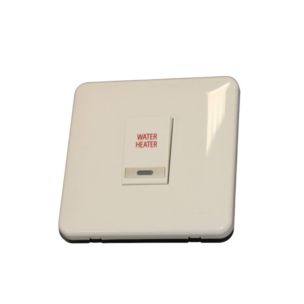 مفتاح سخان بلون بيج من باناسونيك بتصميم عصري ومواصفات أمان عالية، مناسب للاستخدام المنزلي ومطابق للمواصفات الخليجية والسعودية.