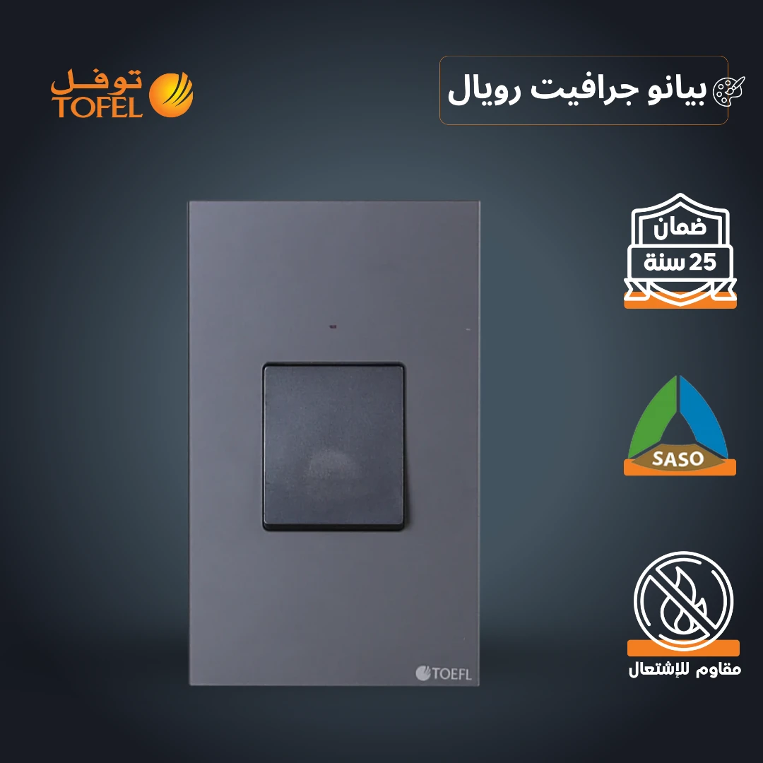مفتاح لمكيف مستطيل 45 أمبير بلون بيانو جرافيت رويالمفتاح لمكيف مستطيل 45 أمبير بلون بيانو جرافيت رويال