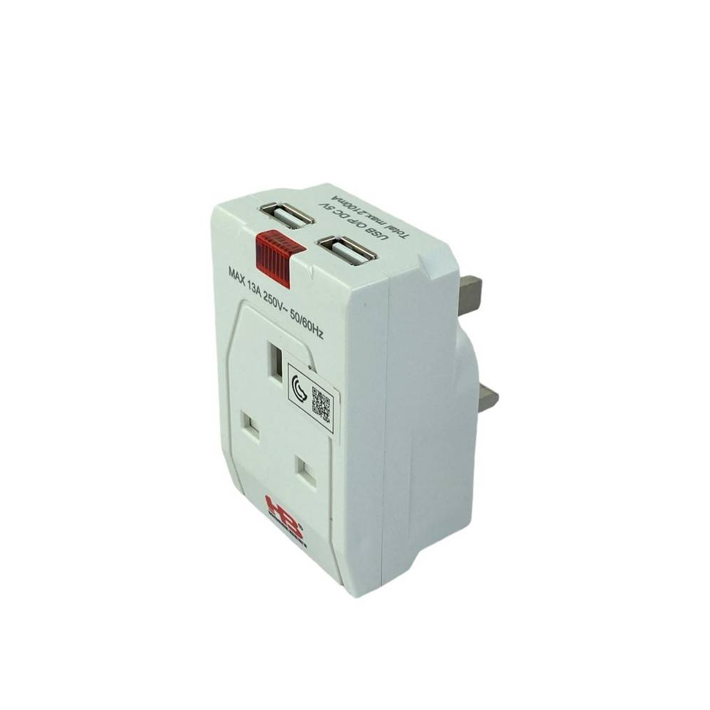 موزع كهرباء جداري على شكل مكعب — فتحة واحدة + HB-AU010 بمنفذي USBموزع كهرباء جداري على شكل مكعب — فتحة واحدة + HB-AU010 بمنفذي USB
