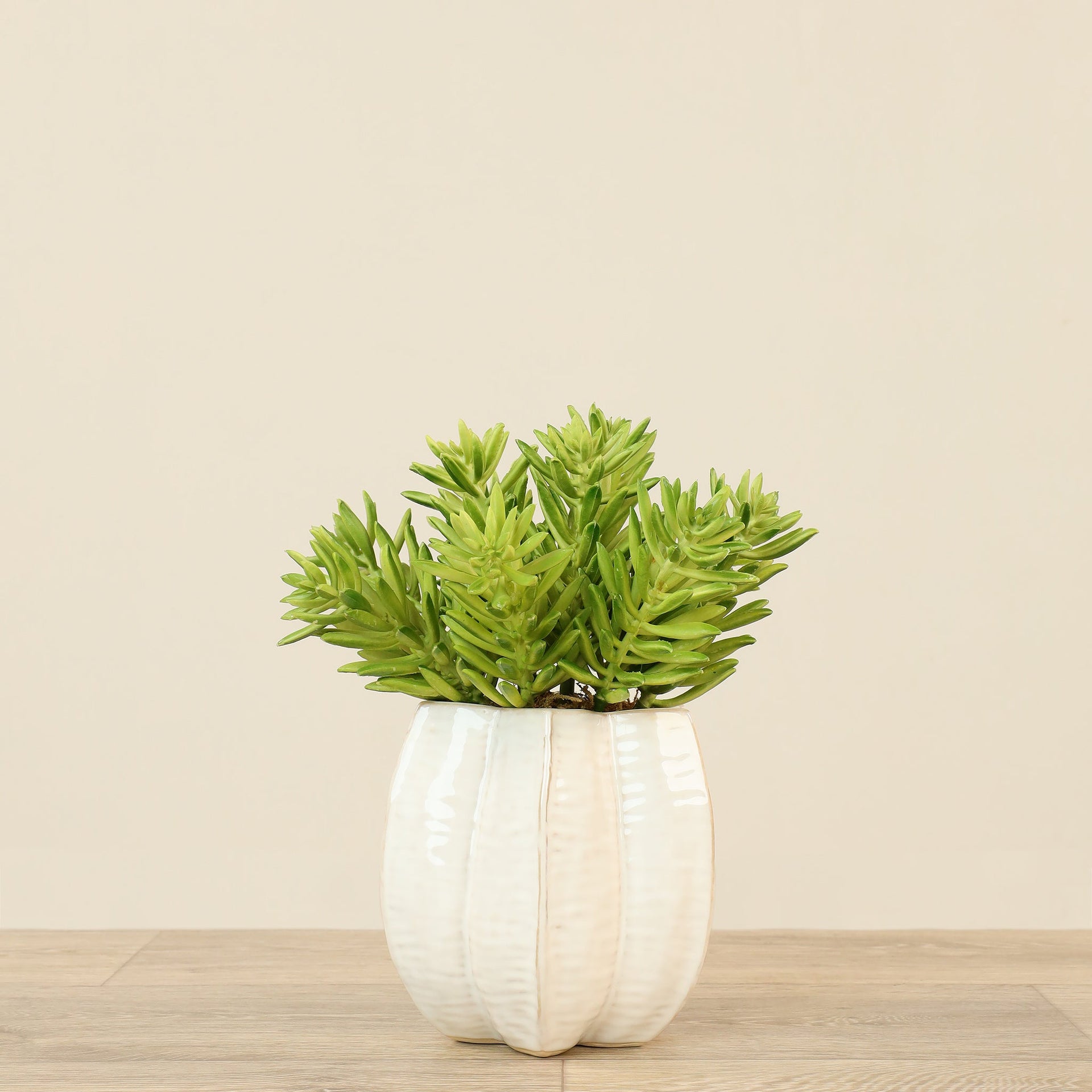 نبات إيونيوم صناعي مزروع في أصيص، يتميز بأوراق خضراء واقعية تضيف لمسة من الطبيعة والأناقة إلى أي مساحة بدون الحاجة للصيانة أو الري.