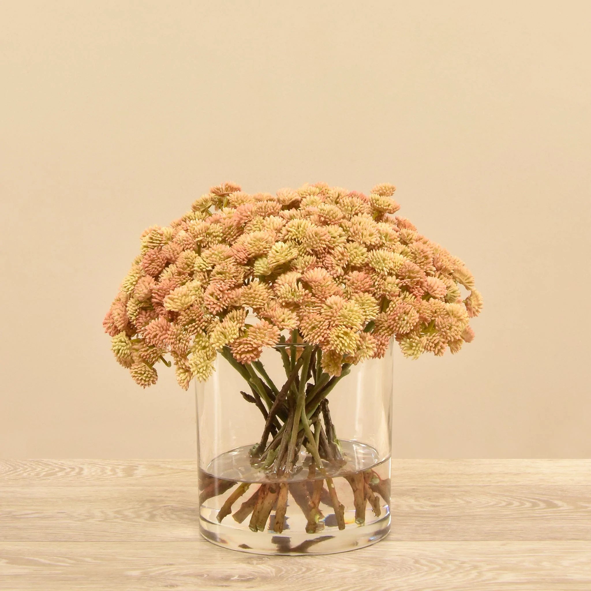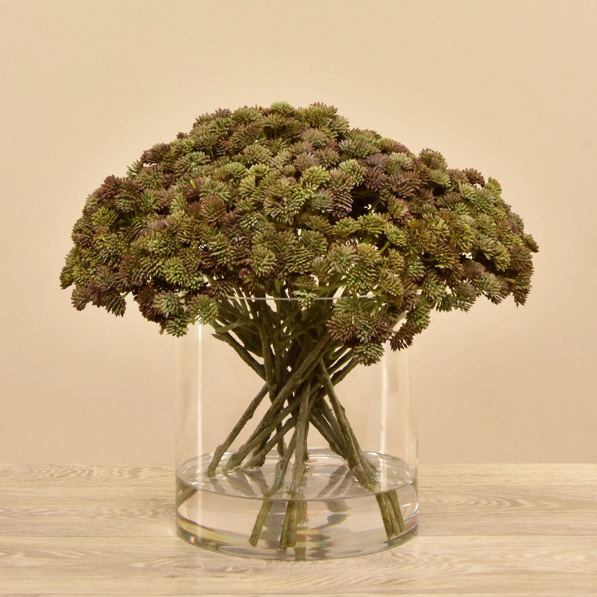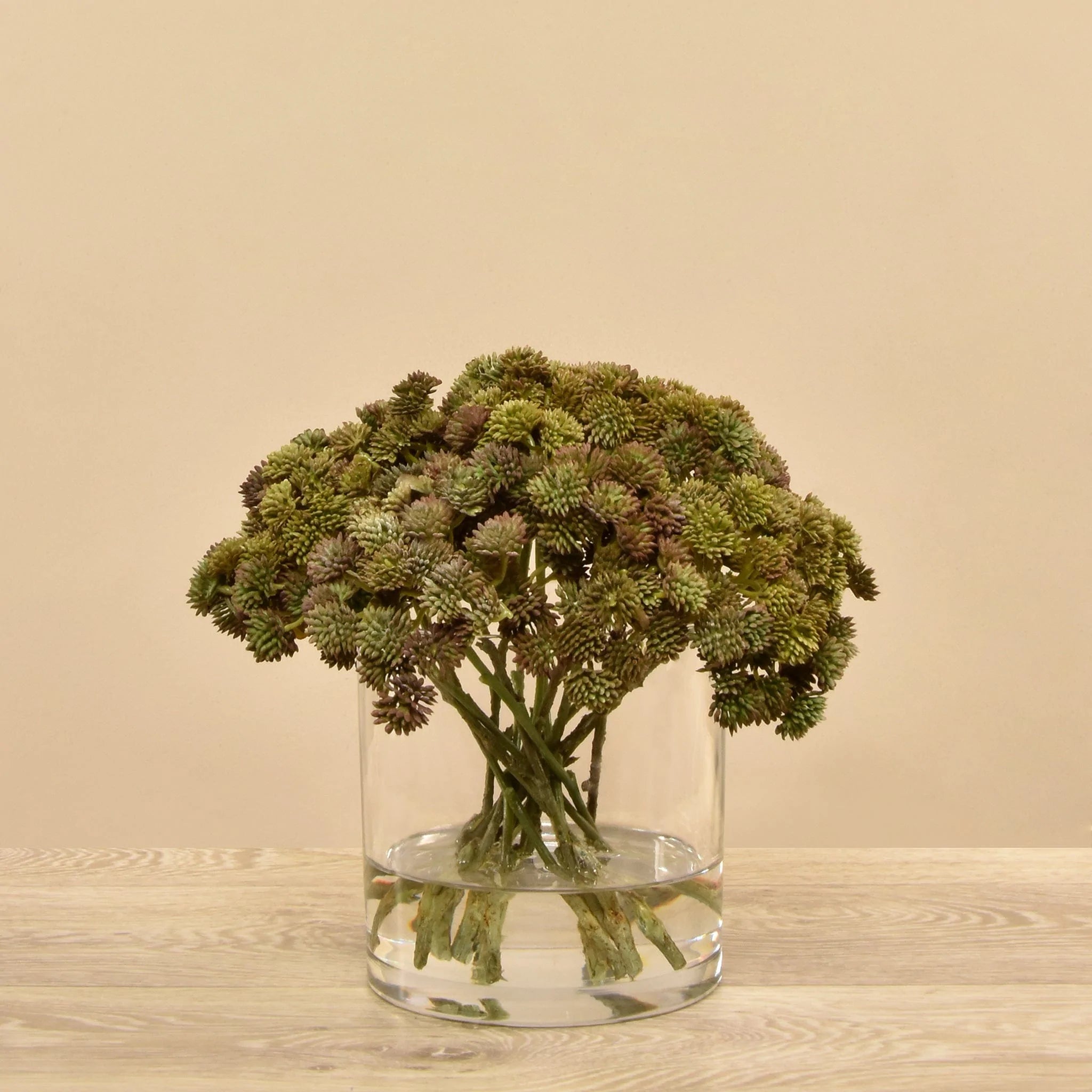 احصل على لمسة خضراء بدون عناء مع هذا التنسيق الأنيق من نبات السيدوم الصناعي في مزهرية زجاجية.