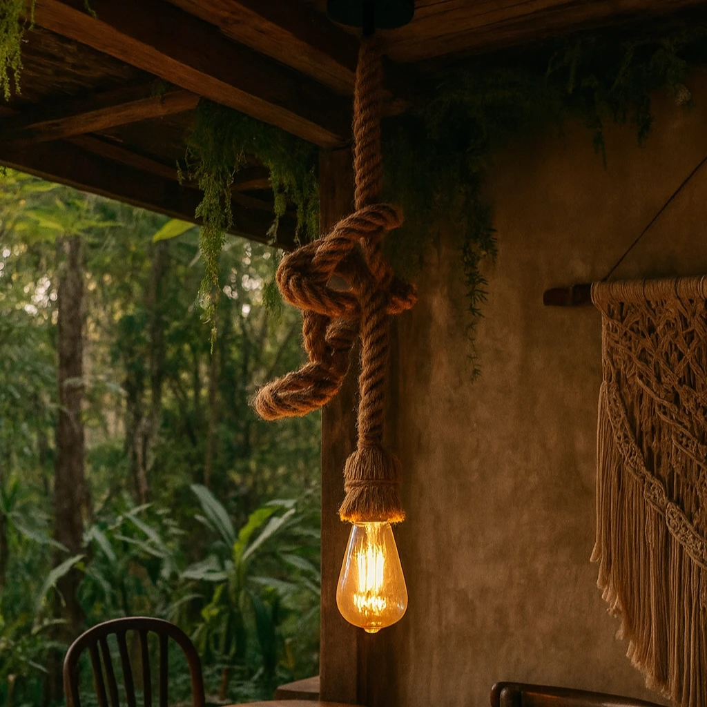 نجفة حبال ريفية "غروب الغابة" — تصميم بوهيمي صناعي لمبة واحدة، طول 2 م، قاعدة E27نجفة حبال ريفية “غروب الغابة” — تصميم بوهيمي صناعي لمبة واحدة، طول 2 م، قاعدة E27