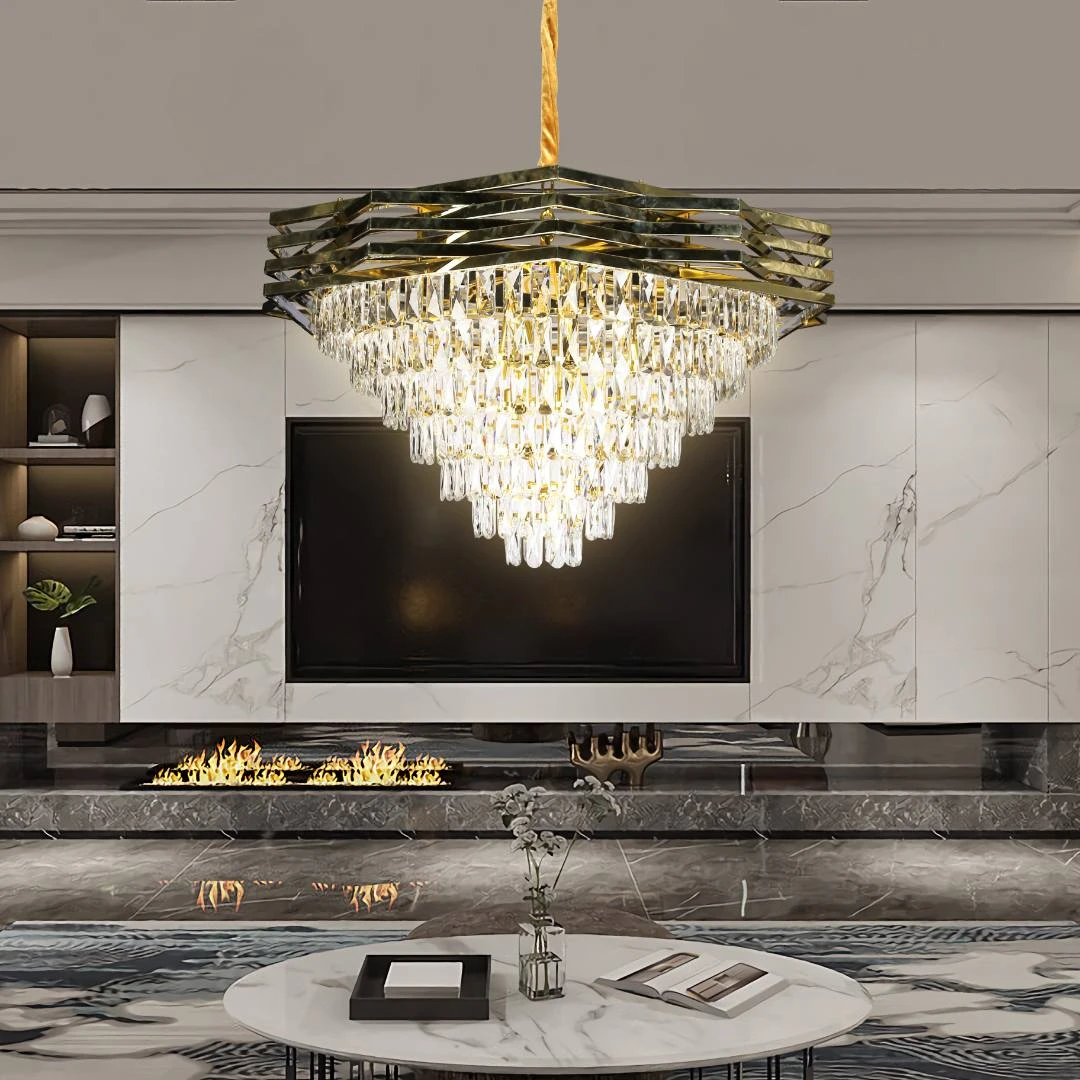 - النمط: ثريا أوروبية بتشطيب ذهبي وقطع كريستال (شيمر).