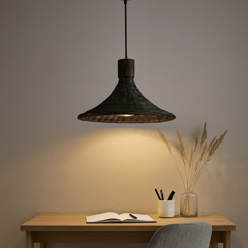 مصباح معلق بطابع ريفي أنيق يضفي دفء وجو يشبه الأكواخ الجبلية. تصميم مستوحى من الأدغال المتدلية يمنح مساحتك لمسة ديكور عصرية ومميزة، ومناسب للاستخدام مع لمبات LED موفرة للطاقة.