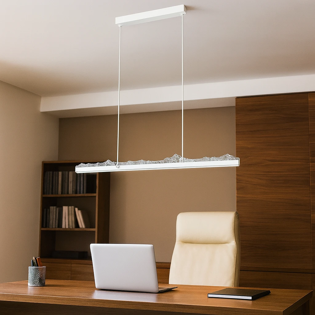 نجف مودرن بلون أبيض، مزود بإضاءة LED ثلاثية الألوان (دافئ — طبيعي — بارد)، بقدرة إجمالية 55 واط وبطول 1200 ملم. مثالي لإضاءة غرف المعيشة، مداخل المنازل، أو المساحات التي تحتاج لمظهر معاصر وإنارة فعّالة.
