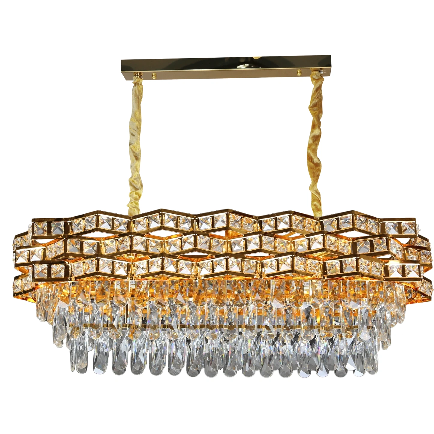 - المواد: كريستال أوروبي عالي الجودة مع هيكل معدني مطلي باللون الذهبي