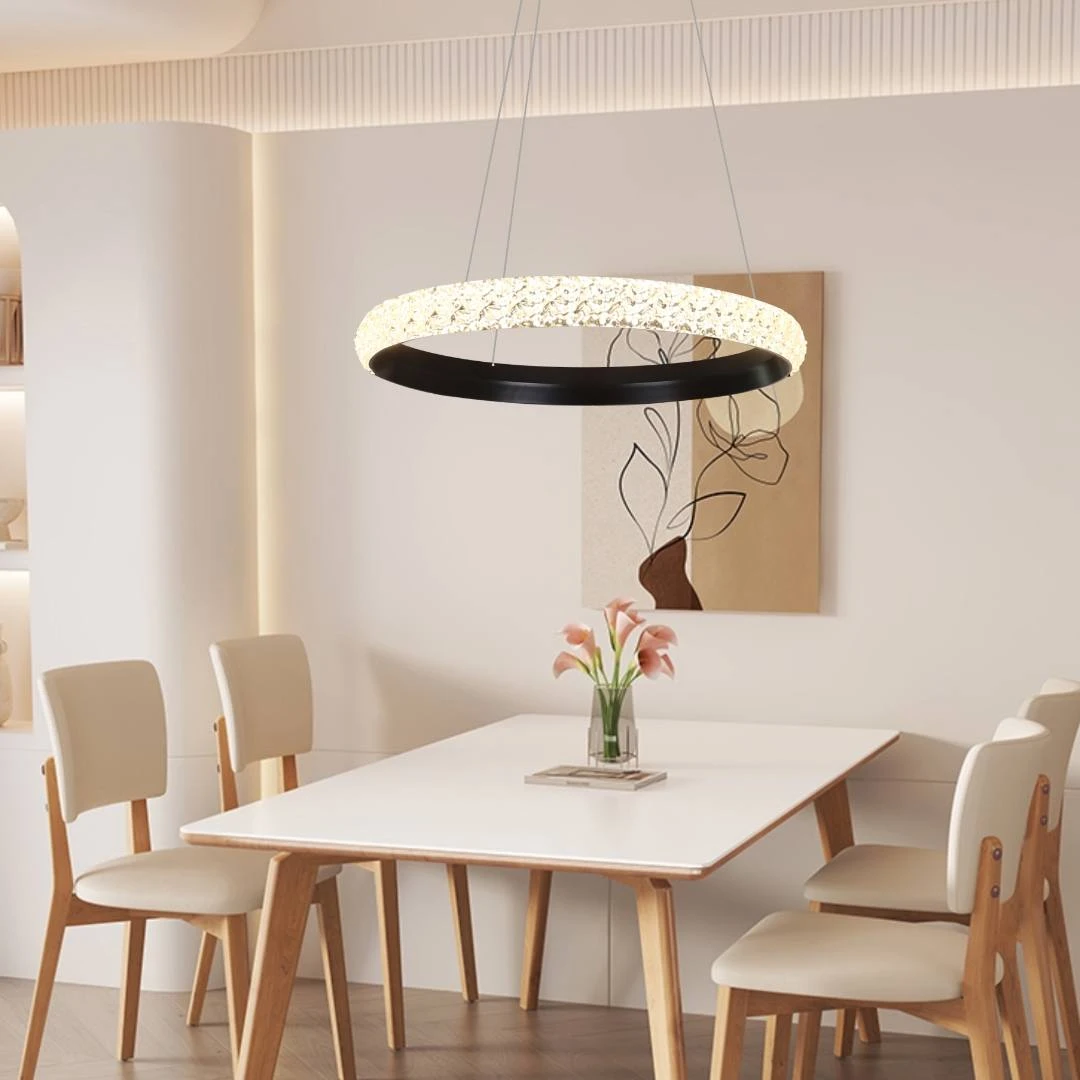 ثريا مودرن أنيقة تمنح منزلك إضاءة مريحة وأجواء مميزة لكل مناسبة. تصميم عصري بلون أسود أنيق مع إضاءة بلون أصفر دافئ تبرز التفاصيل وتخلق لحظات استثنائية.