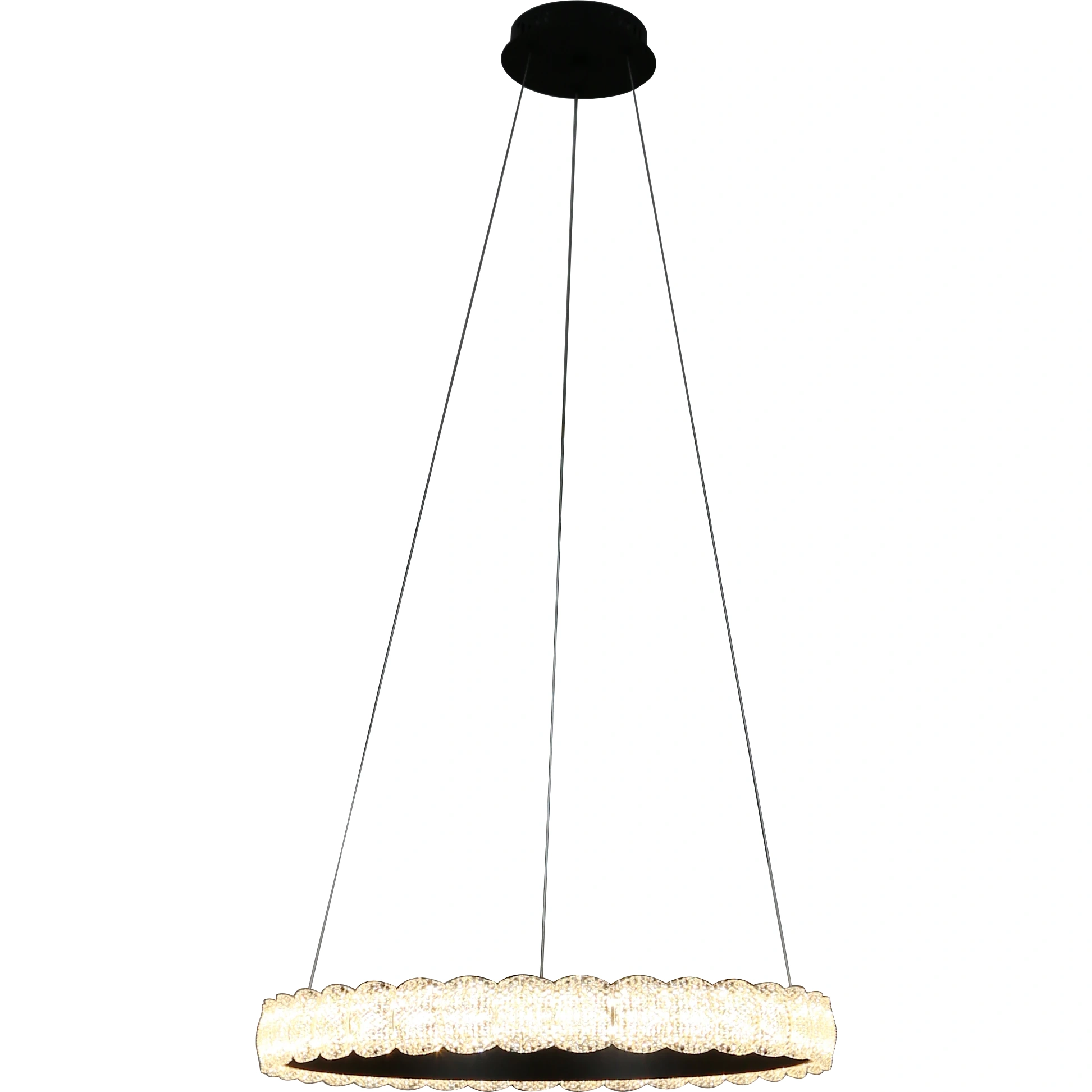 نجف بلون أسود بتصميم بسيط وأنيق يزيد جمال الغرفة إضاءة LED ثلاثية الألوان (تغيير لون الإضاءة) قدرة إجمالية 65 واط قطر النجفة 60 سم إنارة مبهرة تنعش أجواء المكان مناسب للصالات وغرف المعيشة والمساحات الداخلية